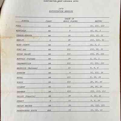 1978 West Virginia Band Festival - Huntington Area Adjudication ResultsAcquisition