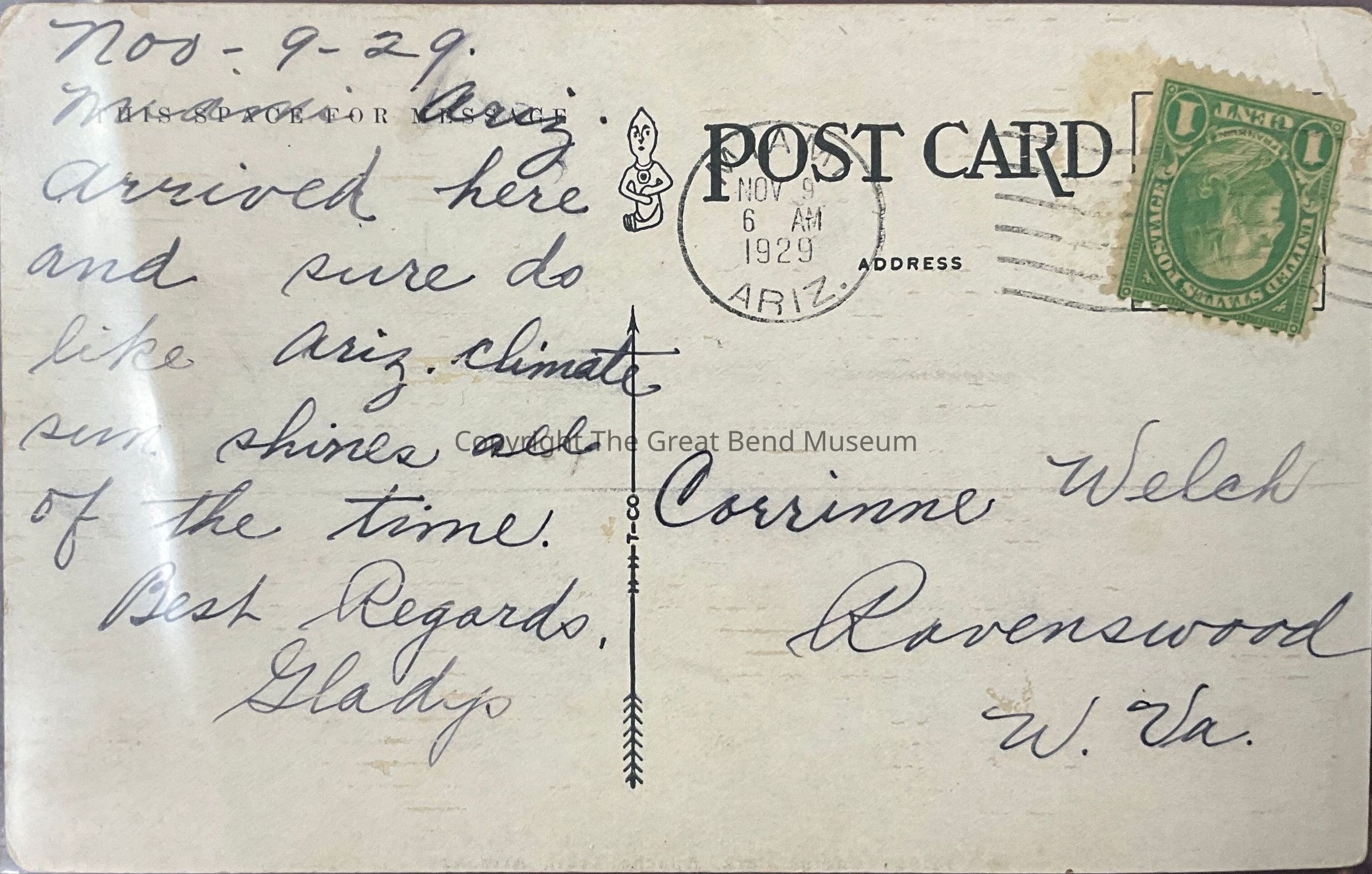 Cactus Park, Apache Trail, Arizona postcard - Letter on back