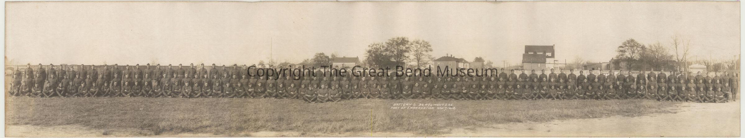 photo - Battery C 36th Regiment CAC (Coast Artillery Corps), port of Embarkation, 11/7/1918. Men are in field with fence behind them and houses behind fence. 217 men in picture. WW1 picture battery C36 CAC Nov 7, 1918 "From Pem Fleming Home, Ravenswood WV" - fitzhugh fleming home.Acquisition