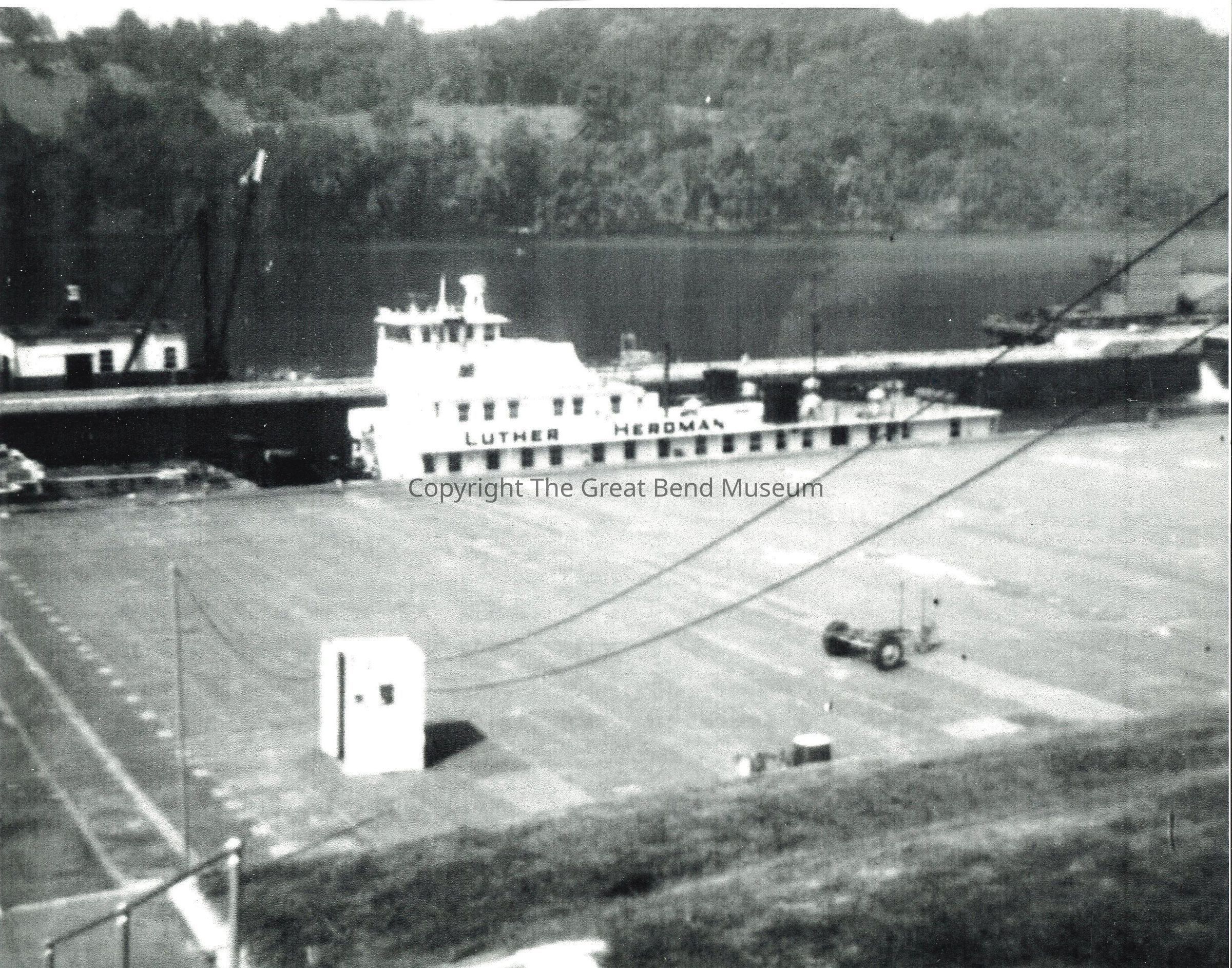 Luther Herdman Tug Boat and barges on river. Boat is docked at the Ravenswood Lock 22.Acquisition