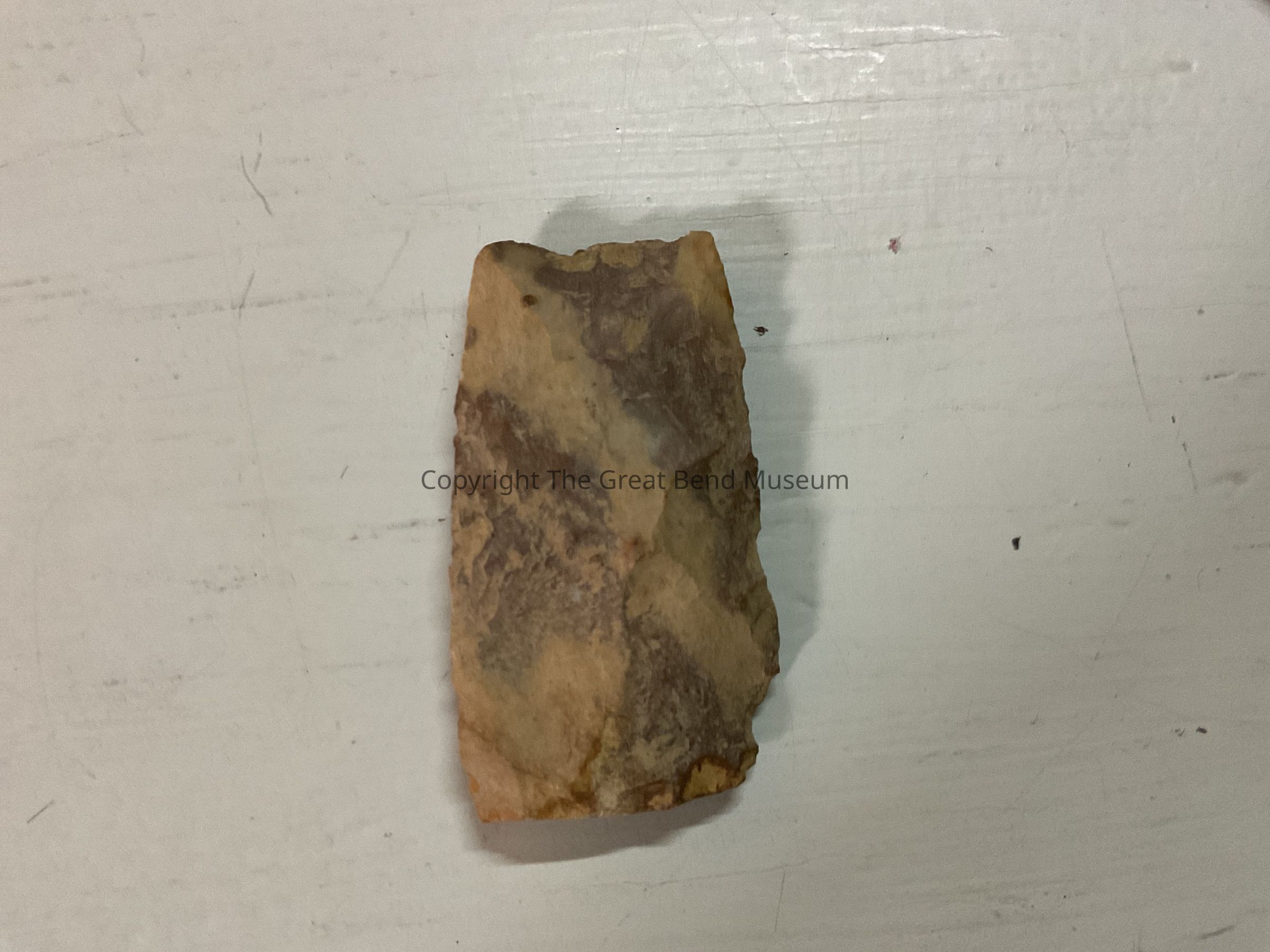 Fairly thick fine flake, fine flake scars along one side of blade. This forms the scraping edge. Used for scraping hair from hides, smoothing wood, bone, or shells to be used as tools or ornaments.Acquisition