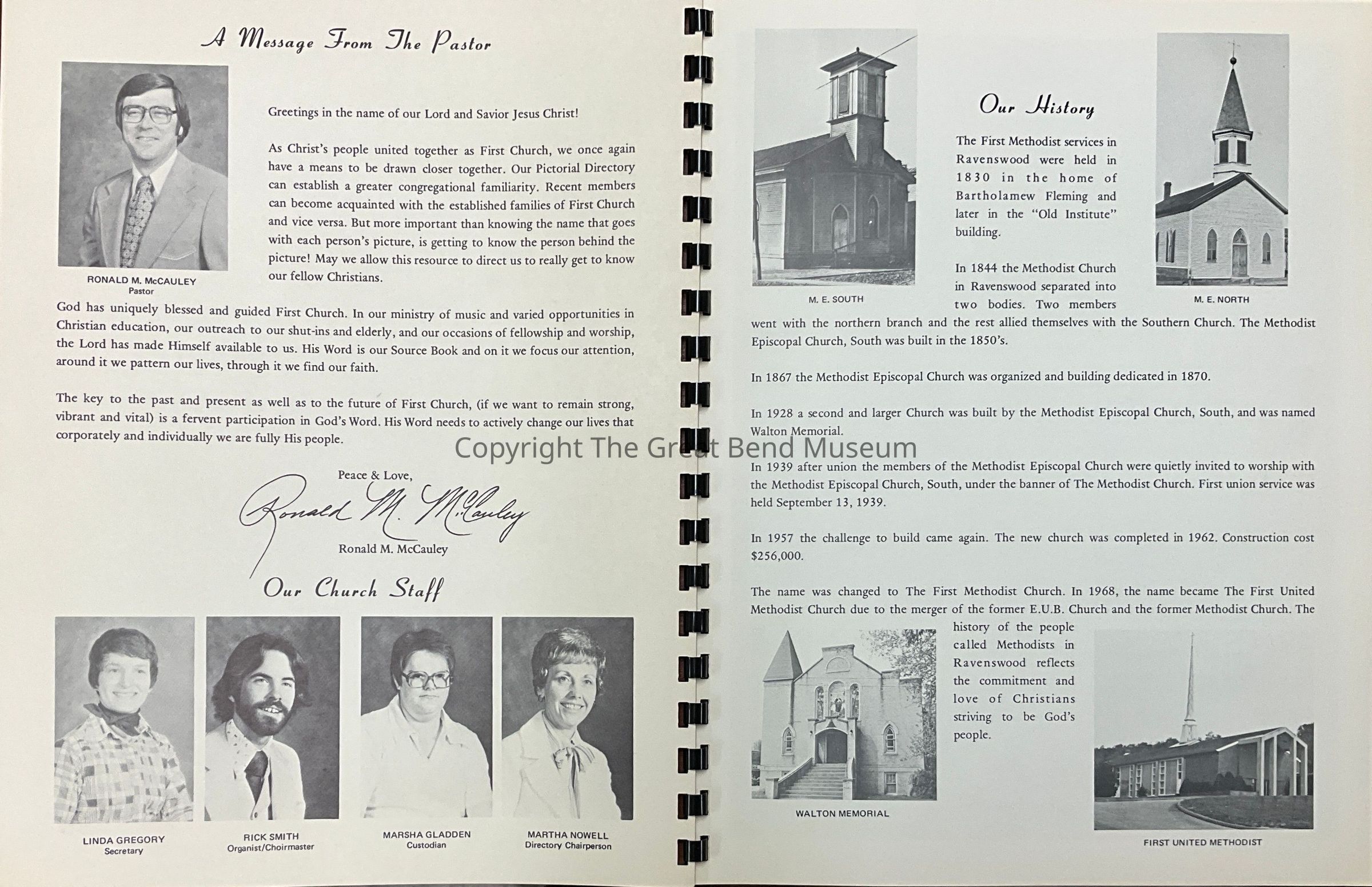 First United Methodist directory. The church is on Flinn Avenue in Ravenswood WV. The year of this publication is unknown. Images appear to possibly be from the 70s.Acquisition