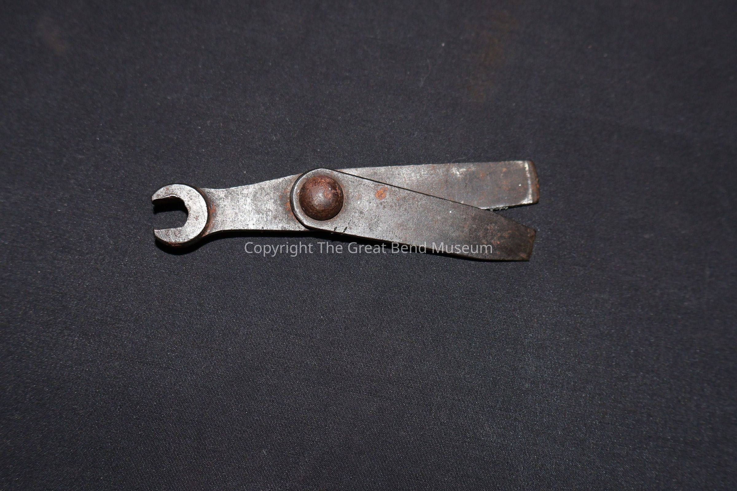 Small Metal Wrench that folds to pocket size so soldiers could carry,. Box end wrench the soldier who used it was Francis M. Watkins, Co 1, 11th Infantry who was born in Germany, but was raised in WV. Used by him in Civil War.Acquisition