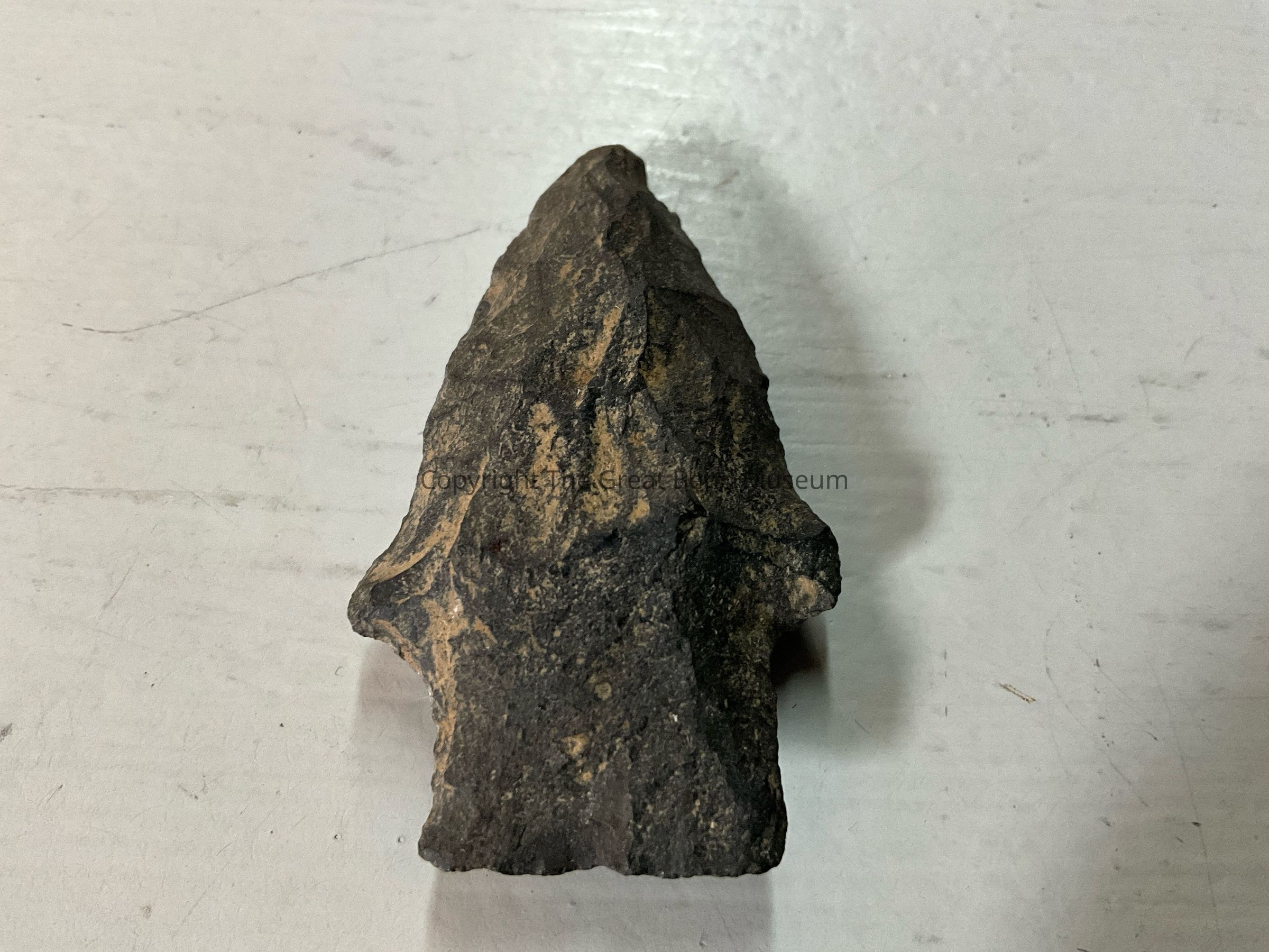 Large thick straight stemmed point. Blade is triangular and biconvex in cross section. Stem is straight side and basal edge is worked and straight.Acquisition