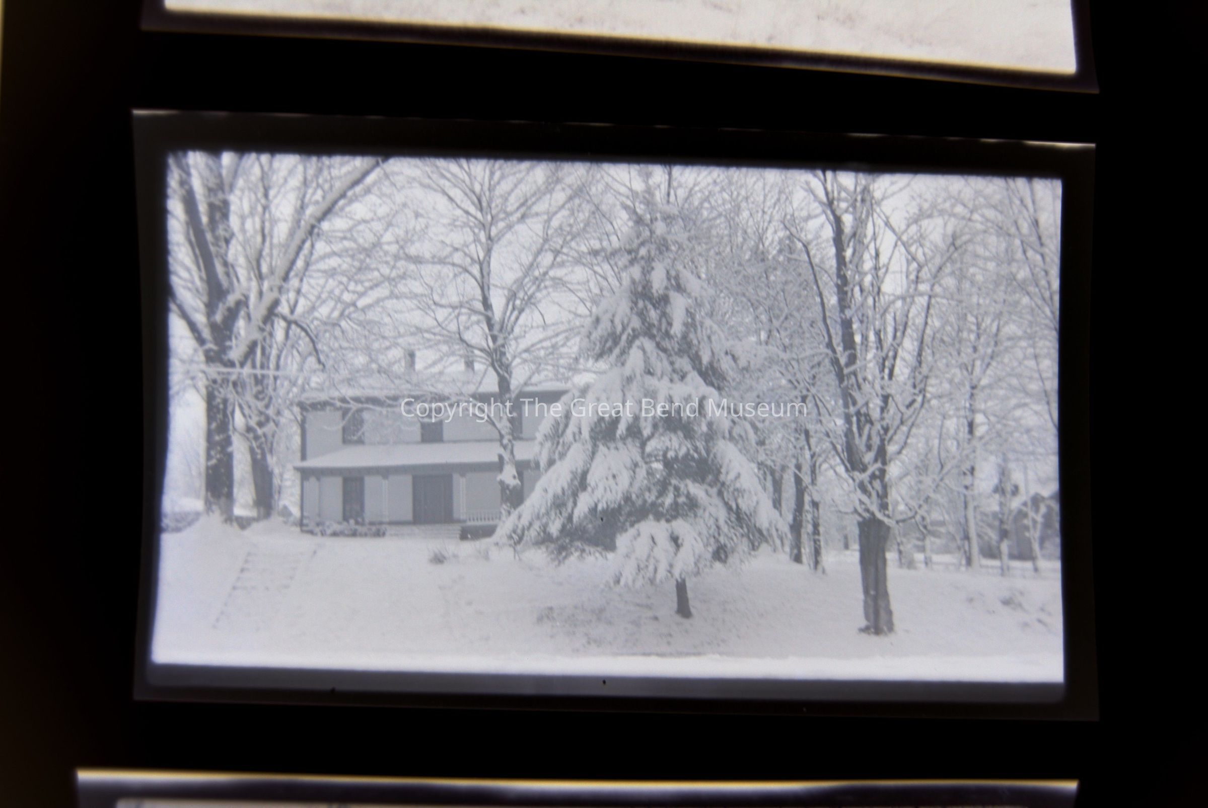 Fitzhugh-Fleming Home in the snow. one photo of "old fleming house," might be predecessor of current home before the front addition and porch were added. or might be old W S Fleming house at the northwest corner of Race and Sycamore Streets.