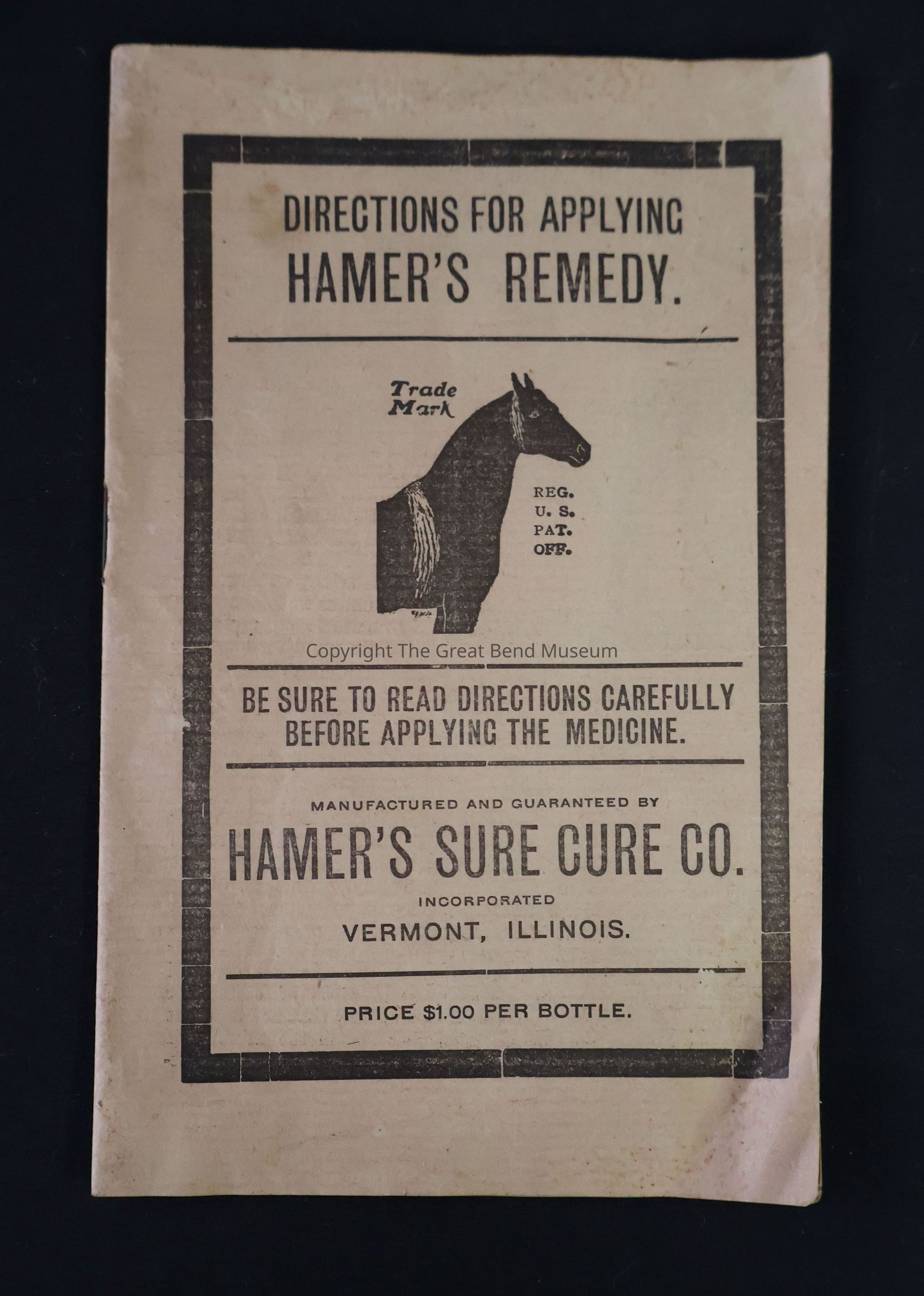 Pamphlet/ booklet - instructions an dosing and administration of medicine - yellow front page, remainder of pages are pink. Title: "Hammer's Remedy" picture of a horse on cover. Used by Dr.Swan in vet practiceAcquisition