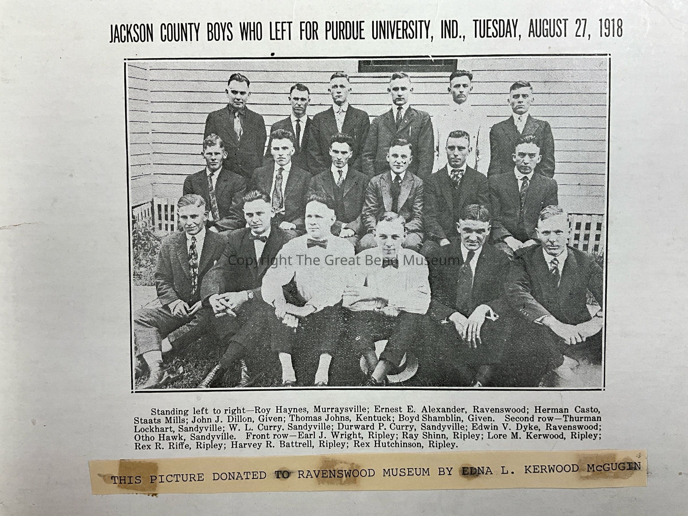 Jackson County boys who left for Purdue University, Indiana, August 27, 1918