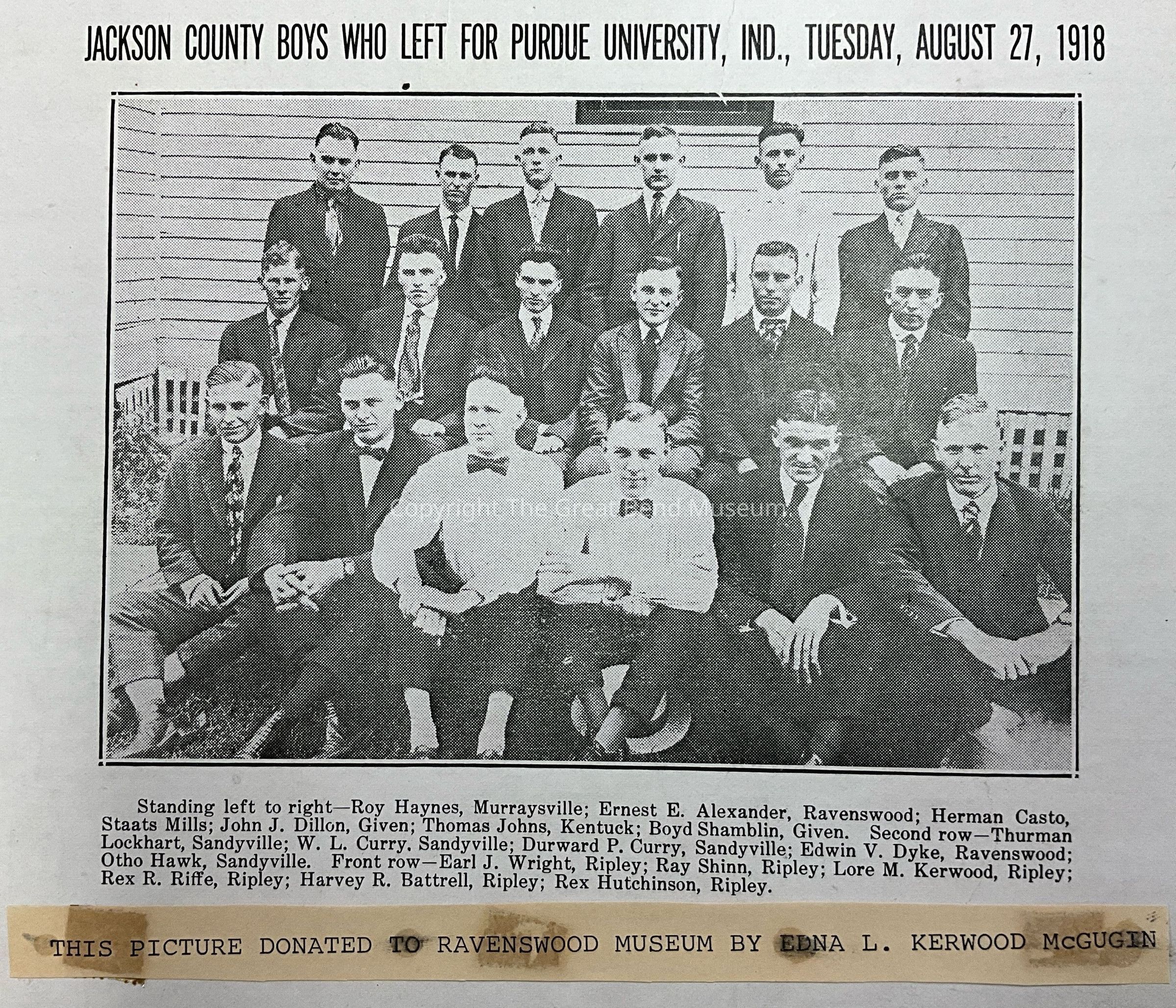 Jackson County boys who left for Purdue University, Indiana August 27, 1918