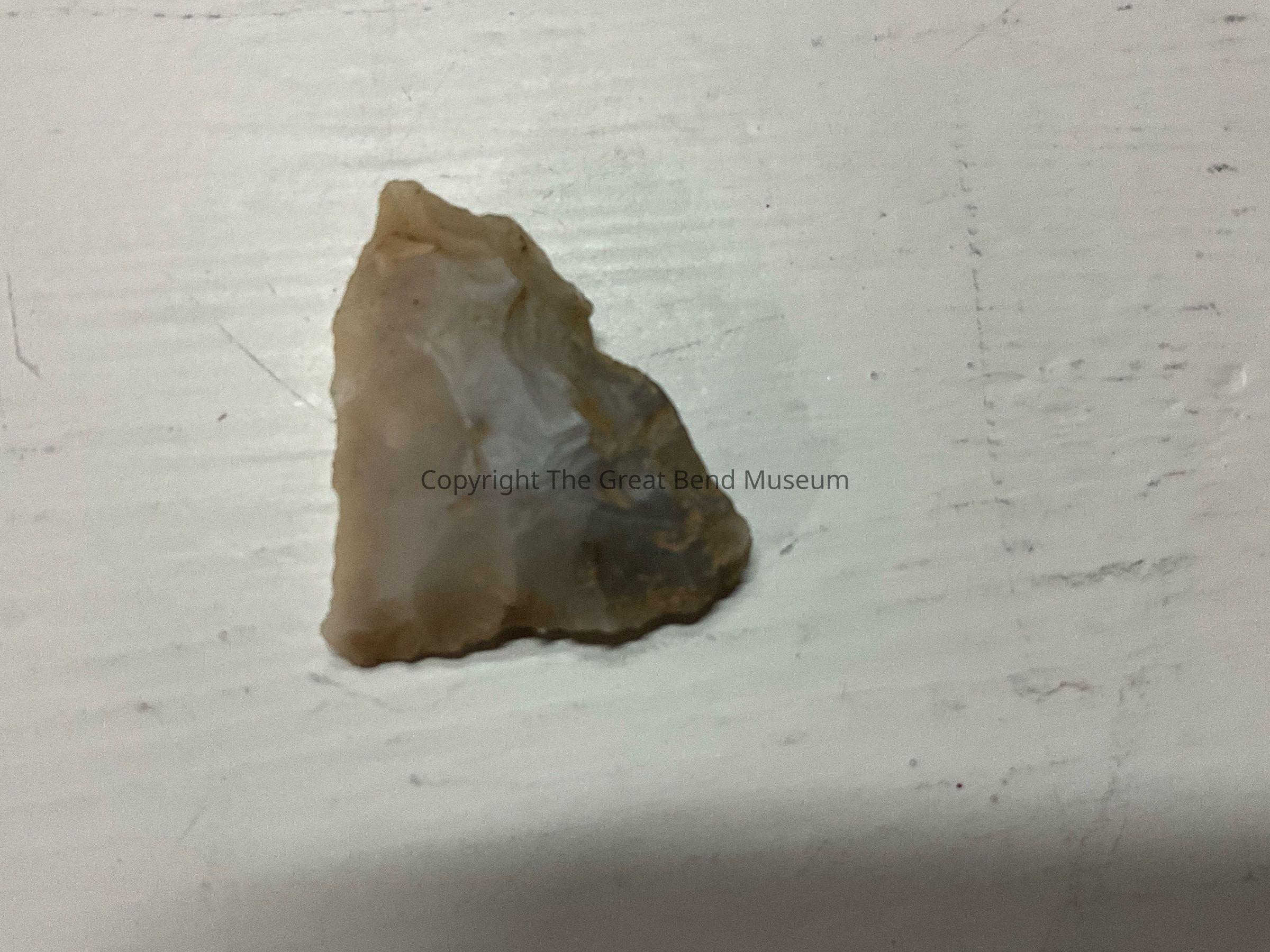 Light grayish Brown triangular shaped point basal edge is slightly concave in the center.. tip of blade has small Knick probably from resharpening. Basal edge is ground also.Acquisition