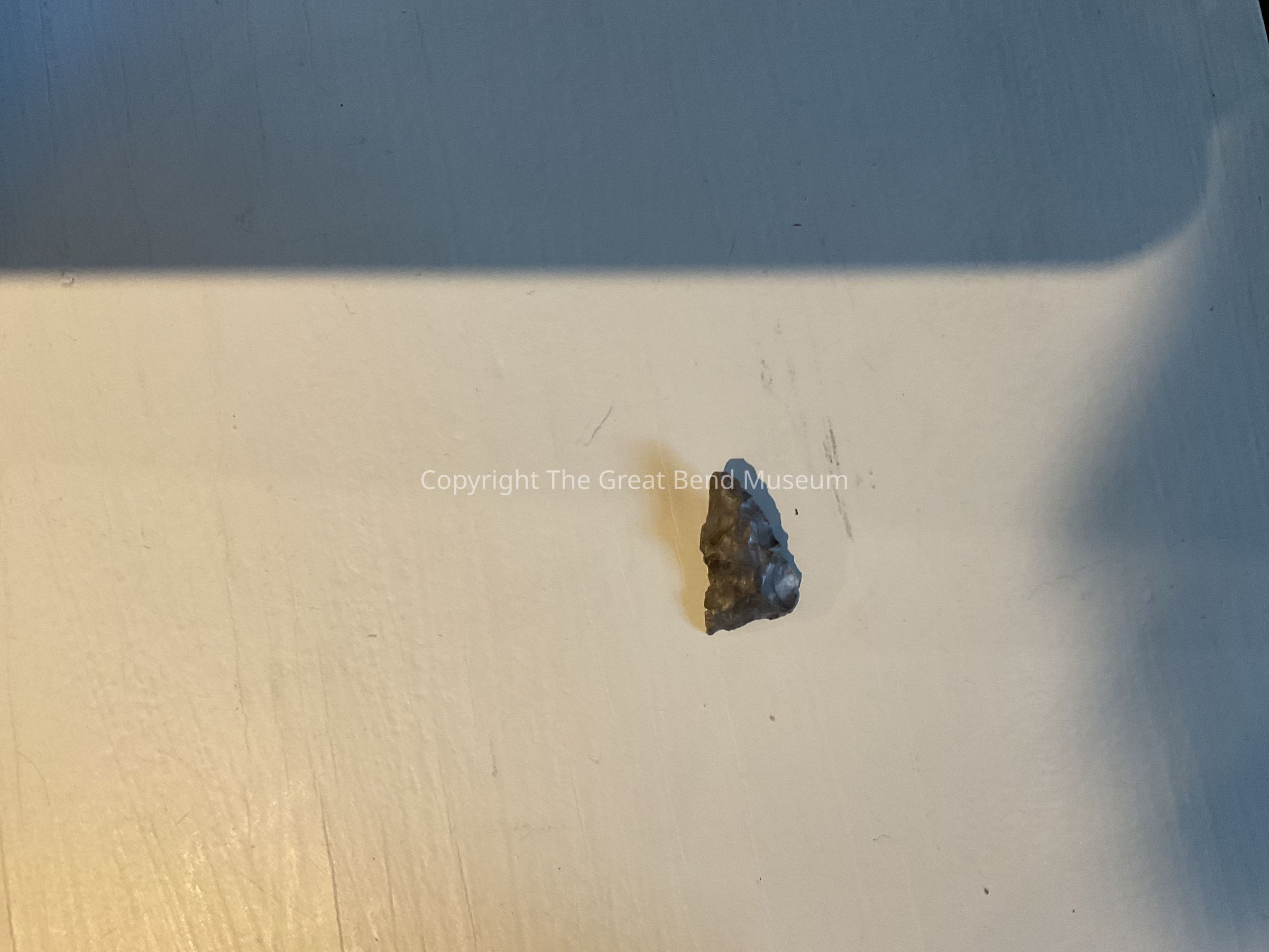 Small dark gray triangle shaped point. Thicker in middle. basal edge is straight to slightly concave.