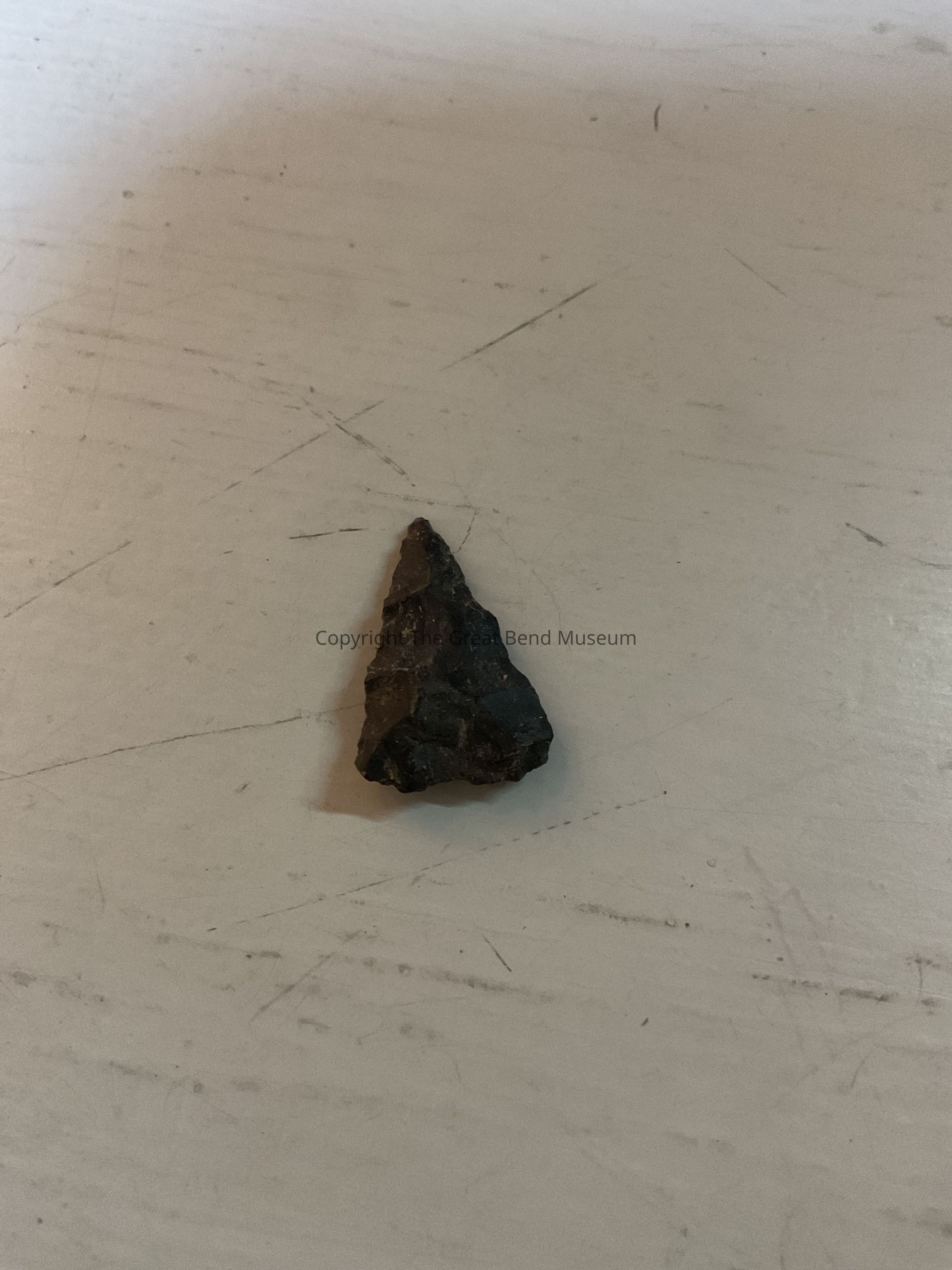 Small dark gray equilateral triangle shaped point. Thin in cross section. Basal edge is con cave-v shaped.Acquisition