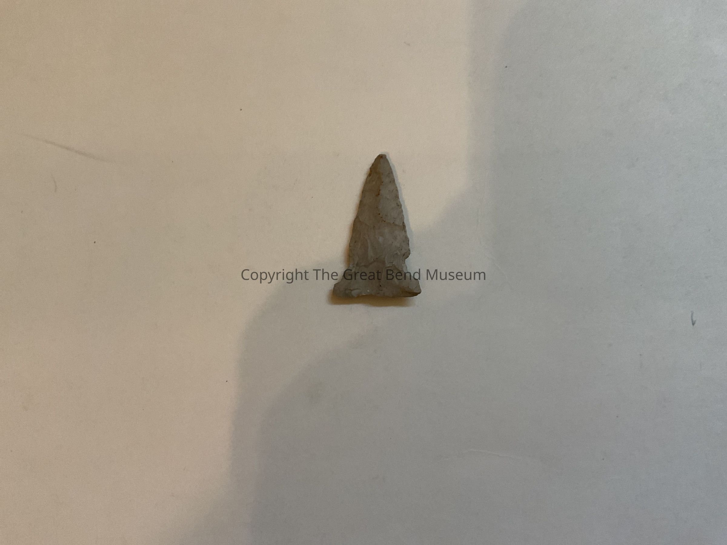 Thin delicate point. Blade is flat in cross section. Side notches are narrow and shallow. Basal edge is almost straight. Basal edge has slight flare at edges. Color is light tan.Acquisition