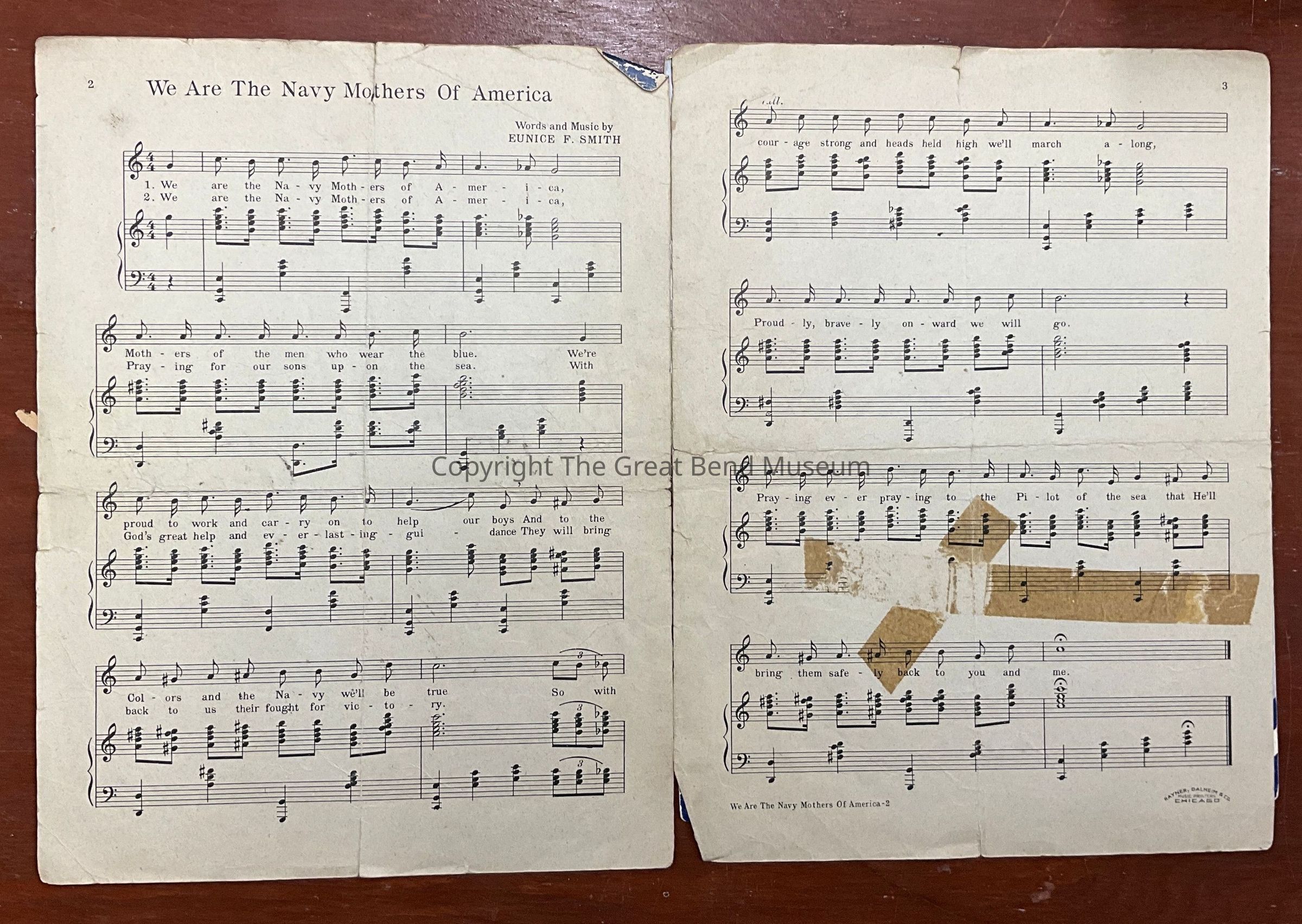 “Song” We Are The Navy Mothers of America. Words and music by Mrs. Eunice F. Smith. Created in 1942.Condition