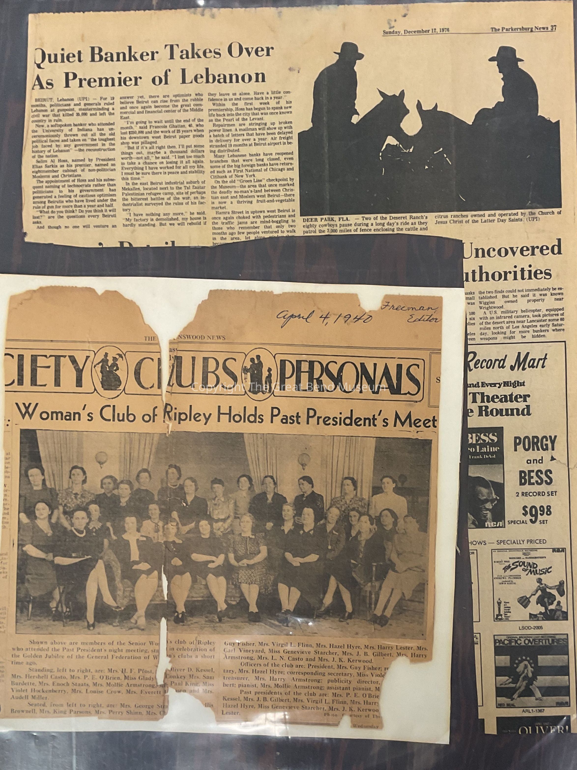 News Clippings from The Parkersburg News (Dec. 12, 1976) and Ravenswood News (April 4, 1940)Entry/Object ID