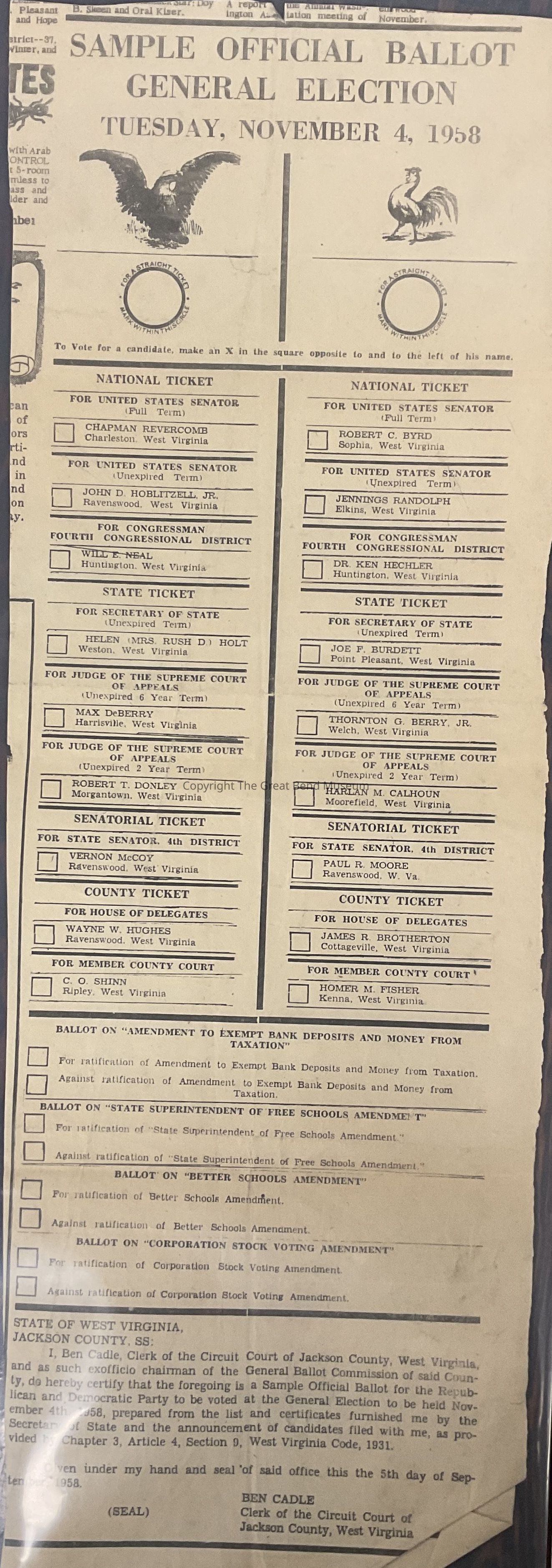 Newspaper clipping with sample ballot for West Virginia state election