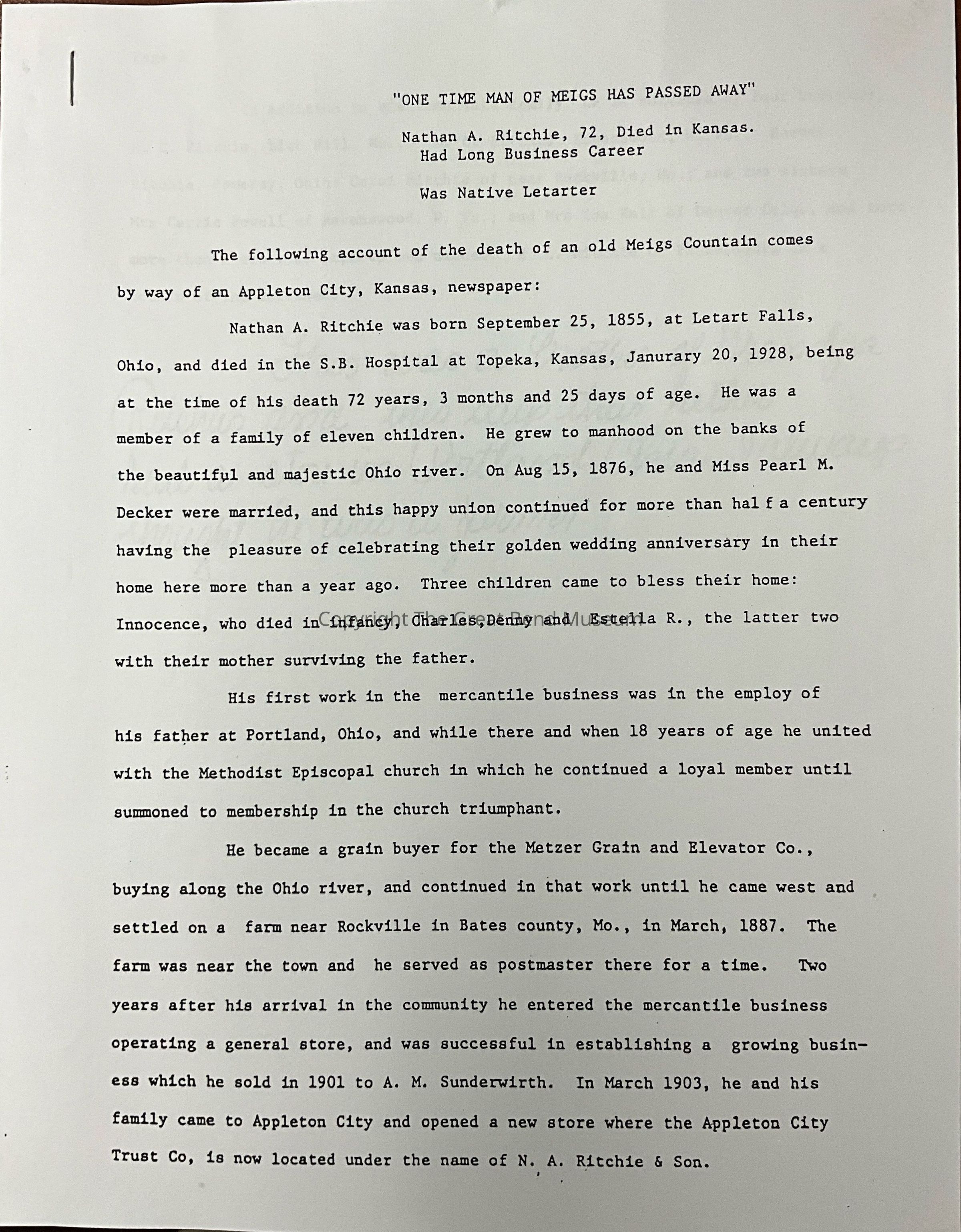 Obituary of Nathan A. Ritchie