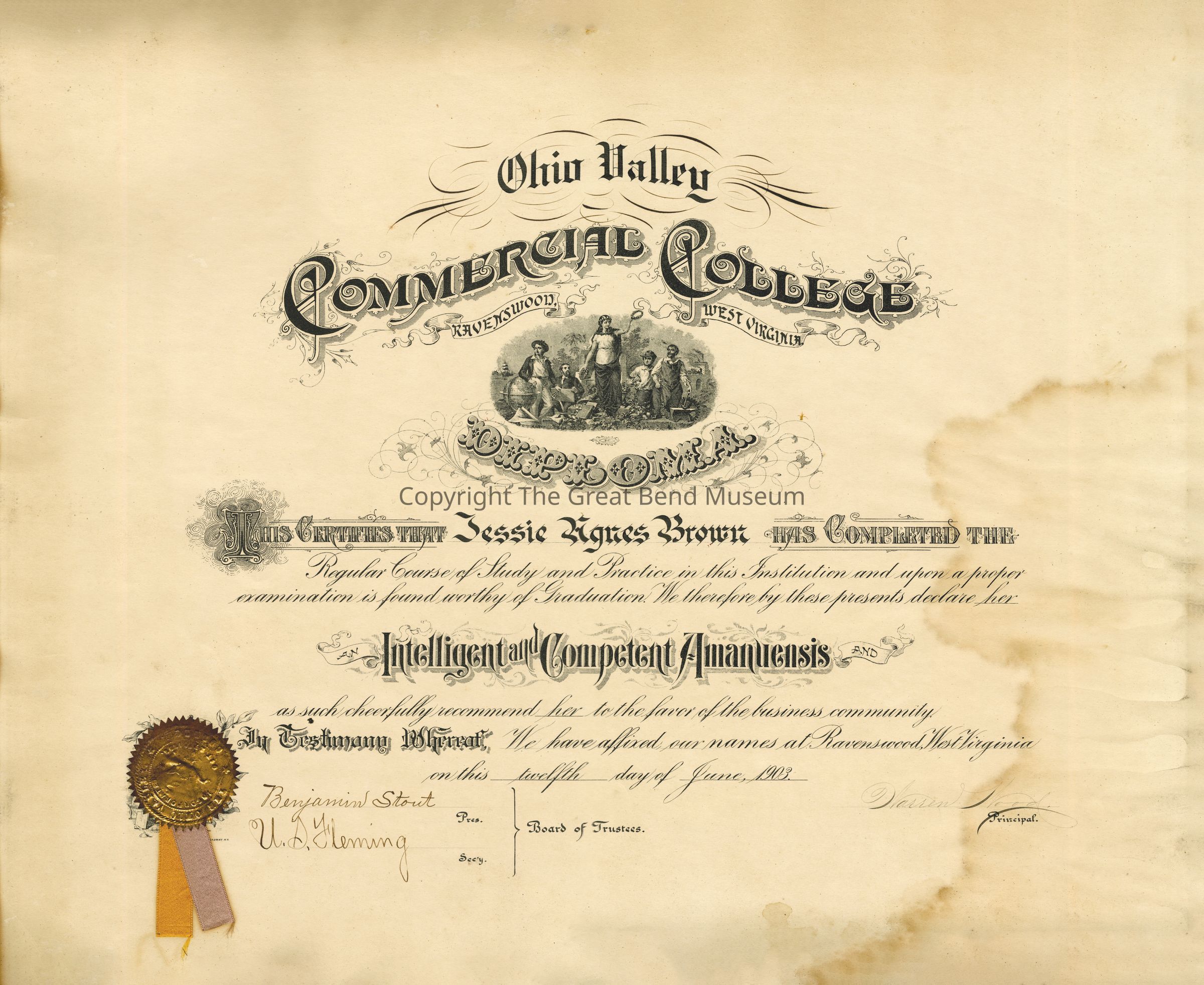 Ohio Valley College Diploma (Jesse Agnes Brown)