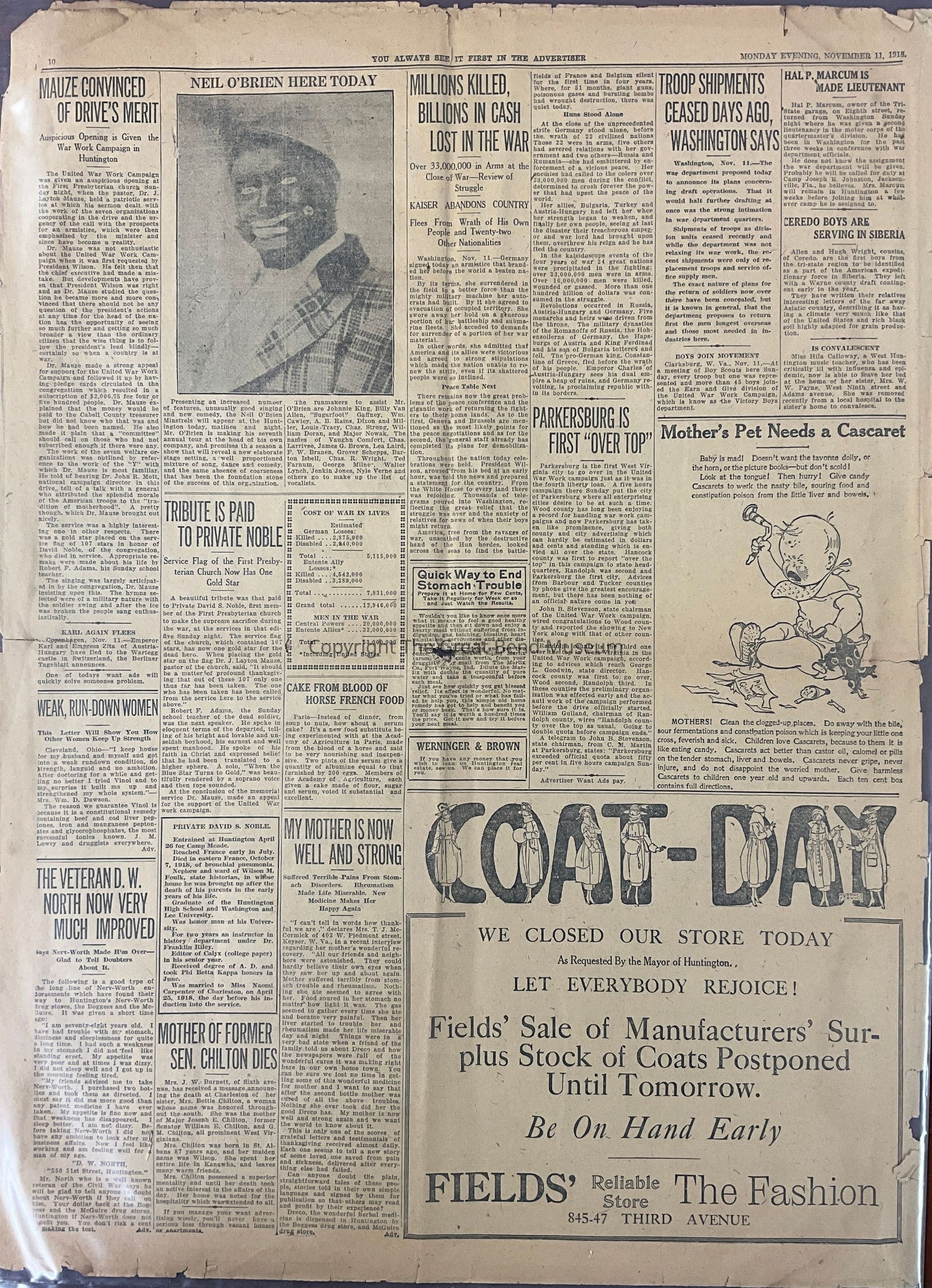 Pages from The Huntington Advertiser - Nov. 11, 1918Entry/Object ID