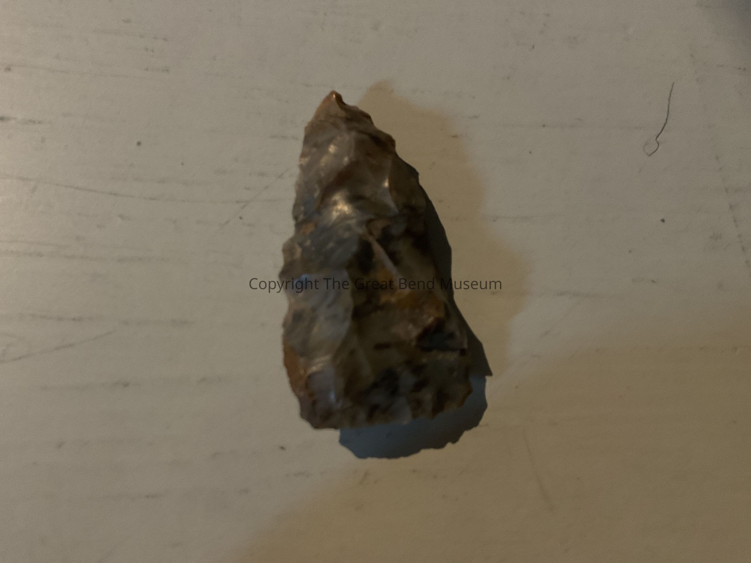 Dark Gray leaf shaped stem point.Base is concave.Edges are somewhat serrated from resharpening. Basal edge is straight. Auriculate LanceolateAcquisition