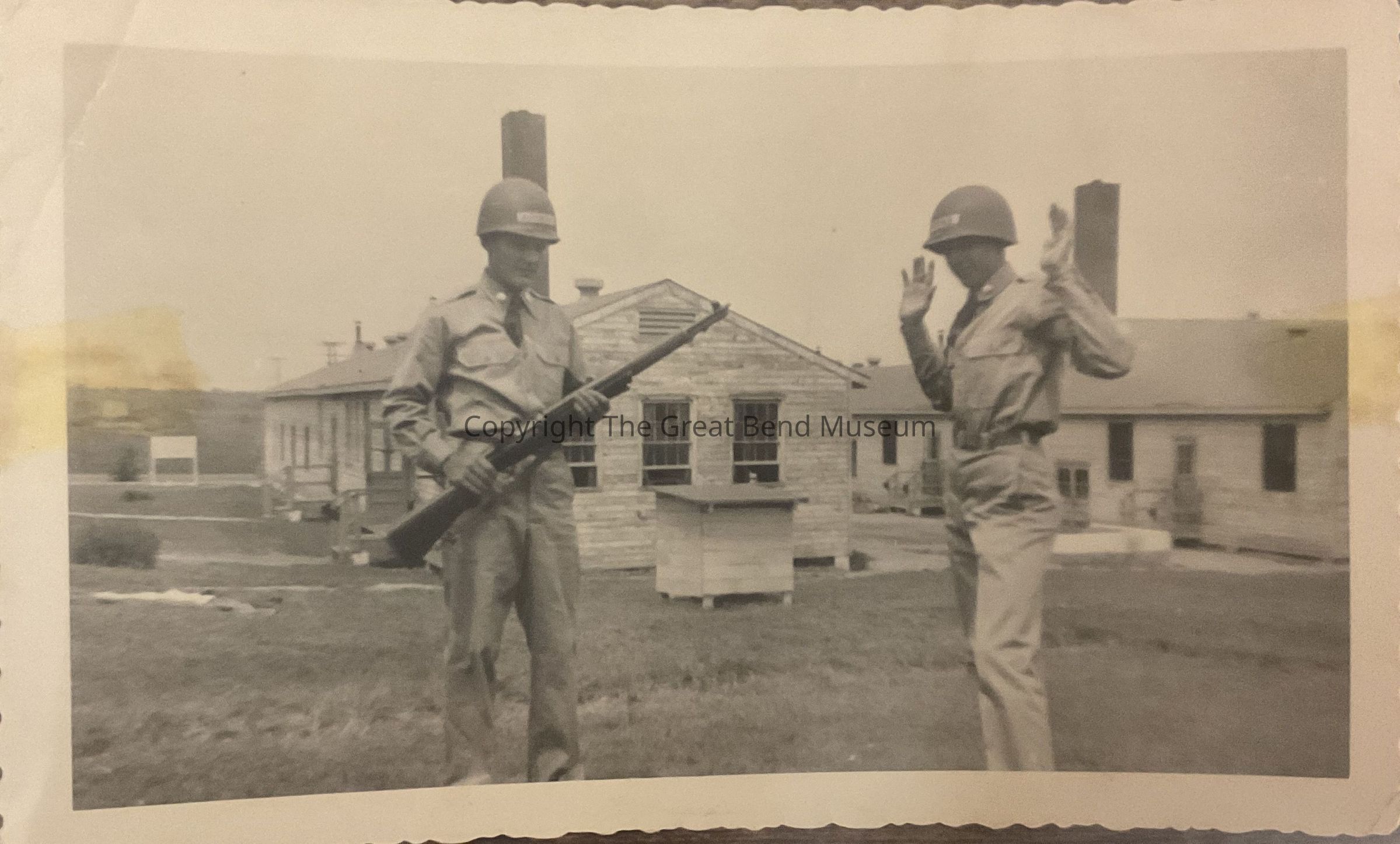 Photo of 2 soldiers standing in front of a barracks - 1952