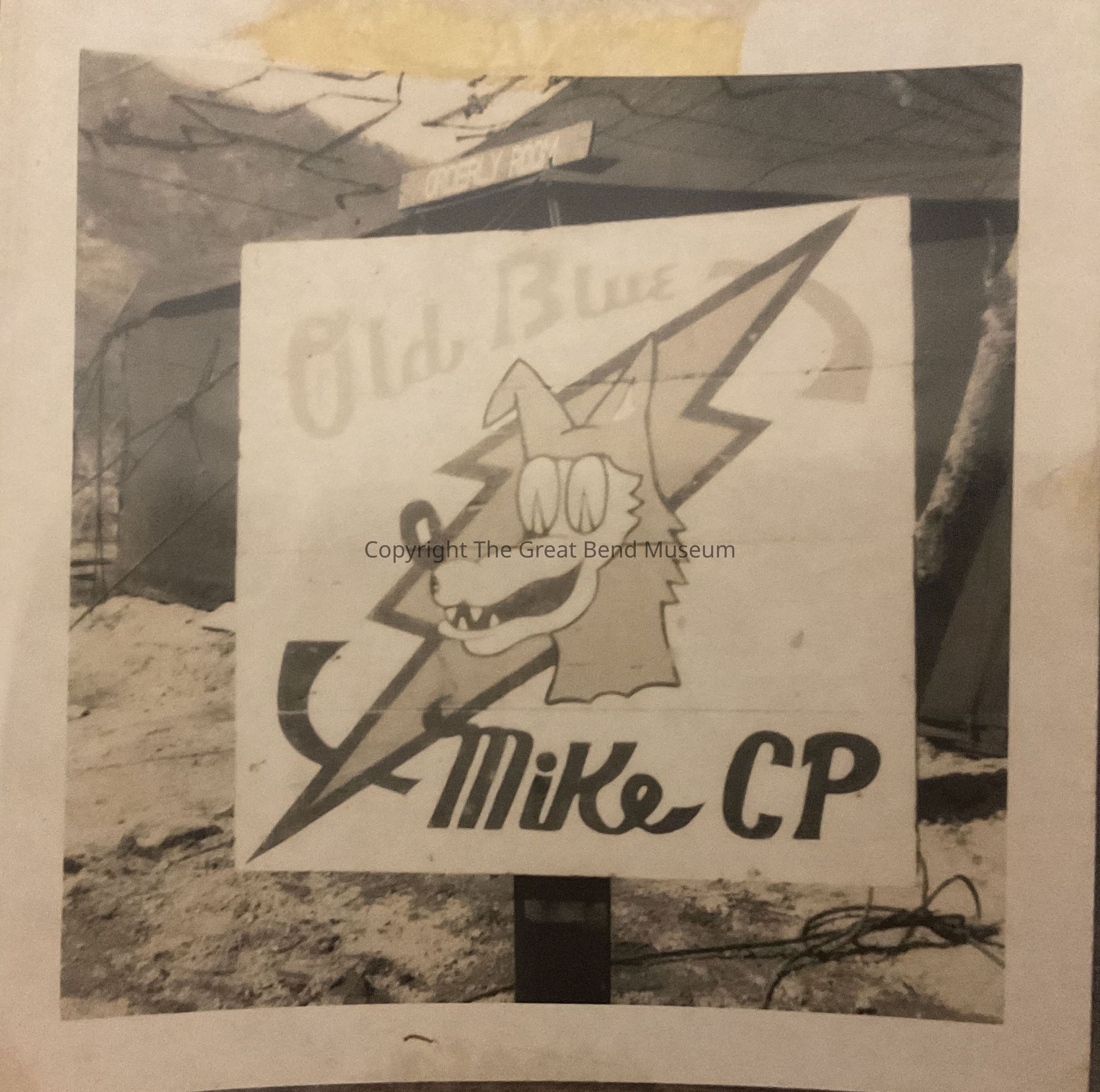Sign that reads “Old Blue” “Mike CP” with lightning bolt and fox logo in the center - 1952