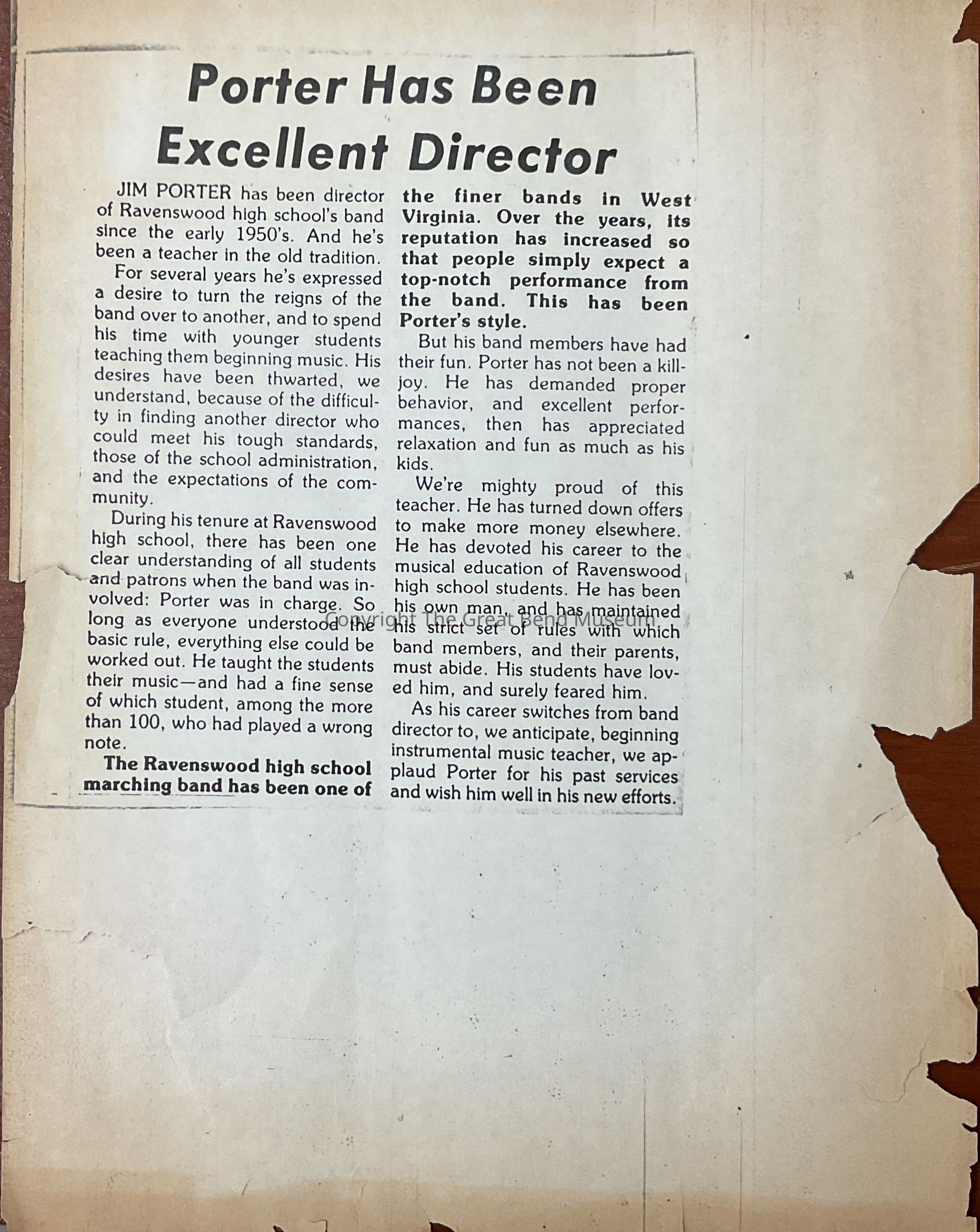 Article on Jim Porter’s devotion to RHS band