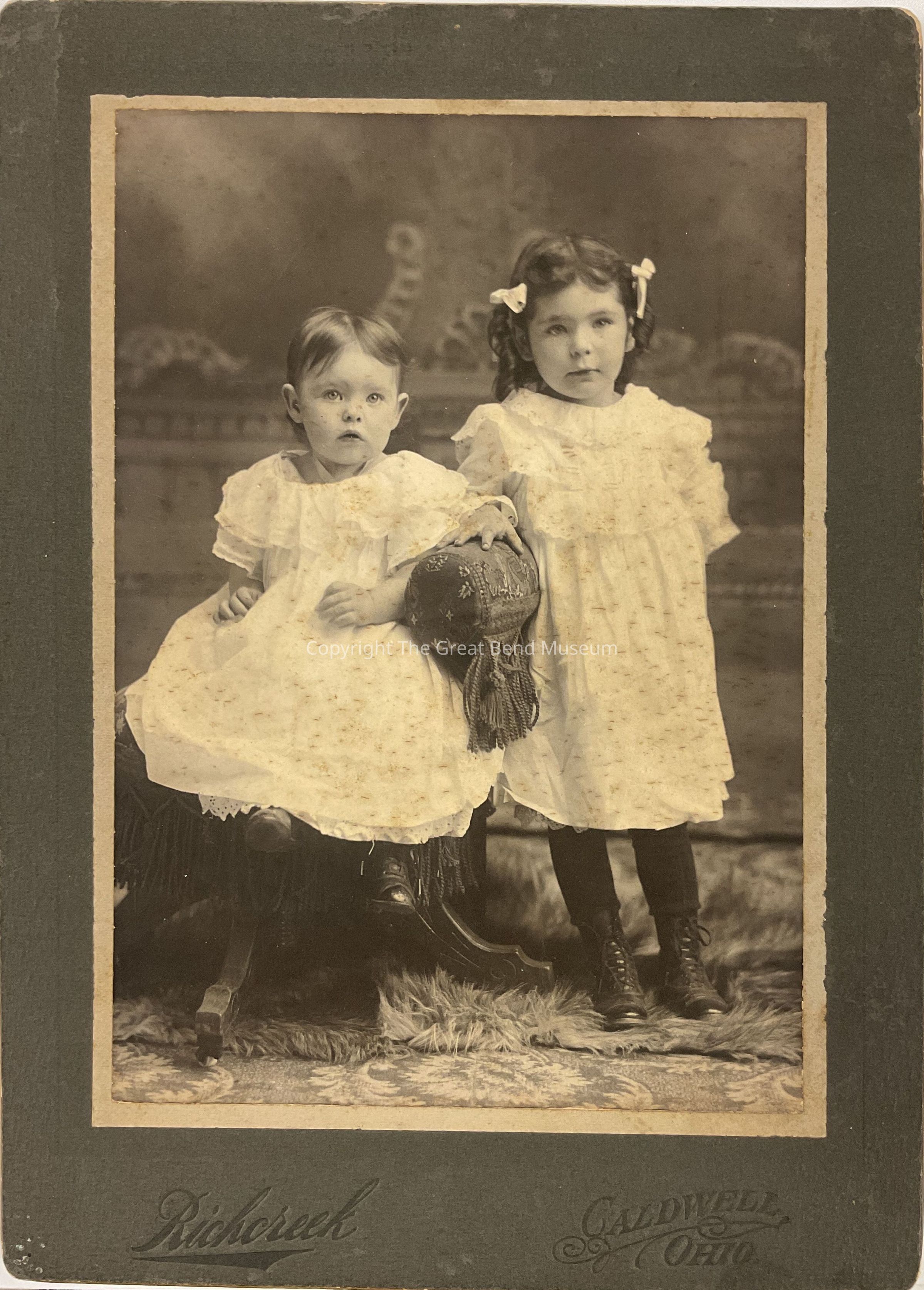 Black and white portrait of Florence and Mildred Dixon taken at Richcreek Studio in Caldwell, OHAcquisition
