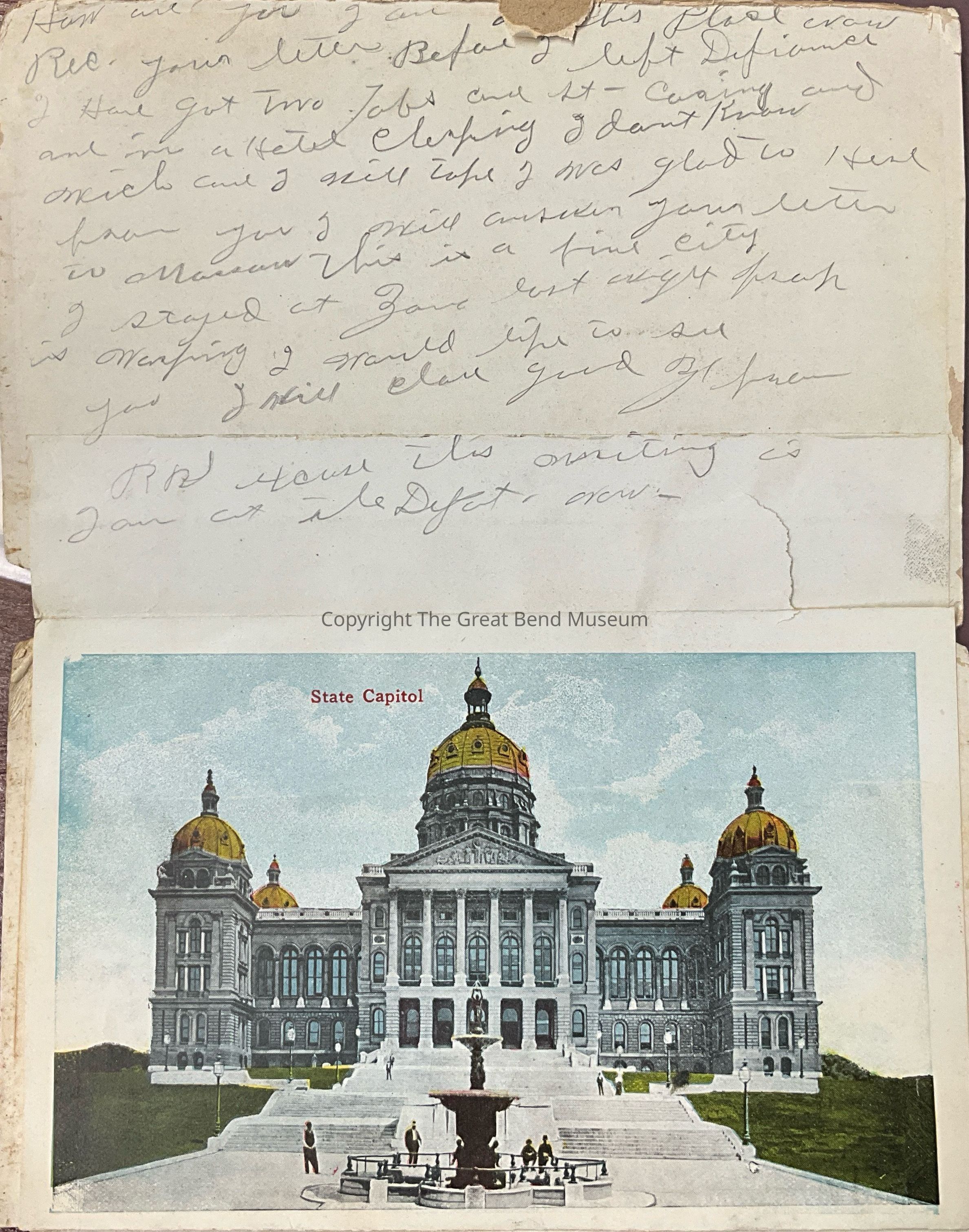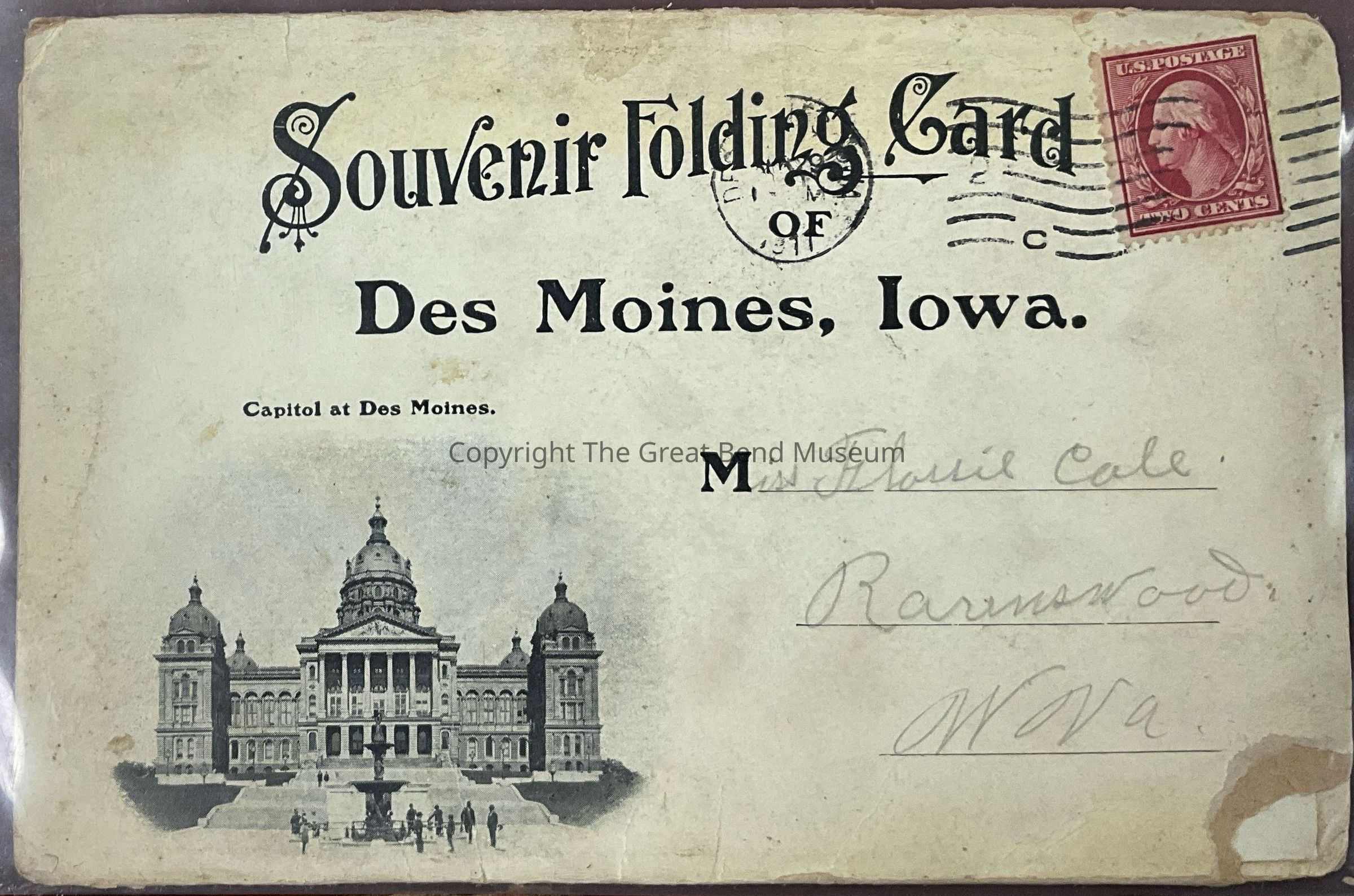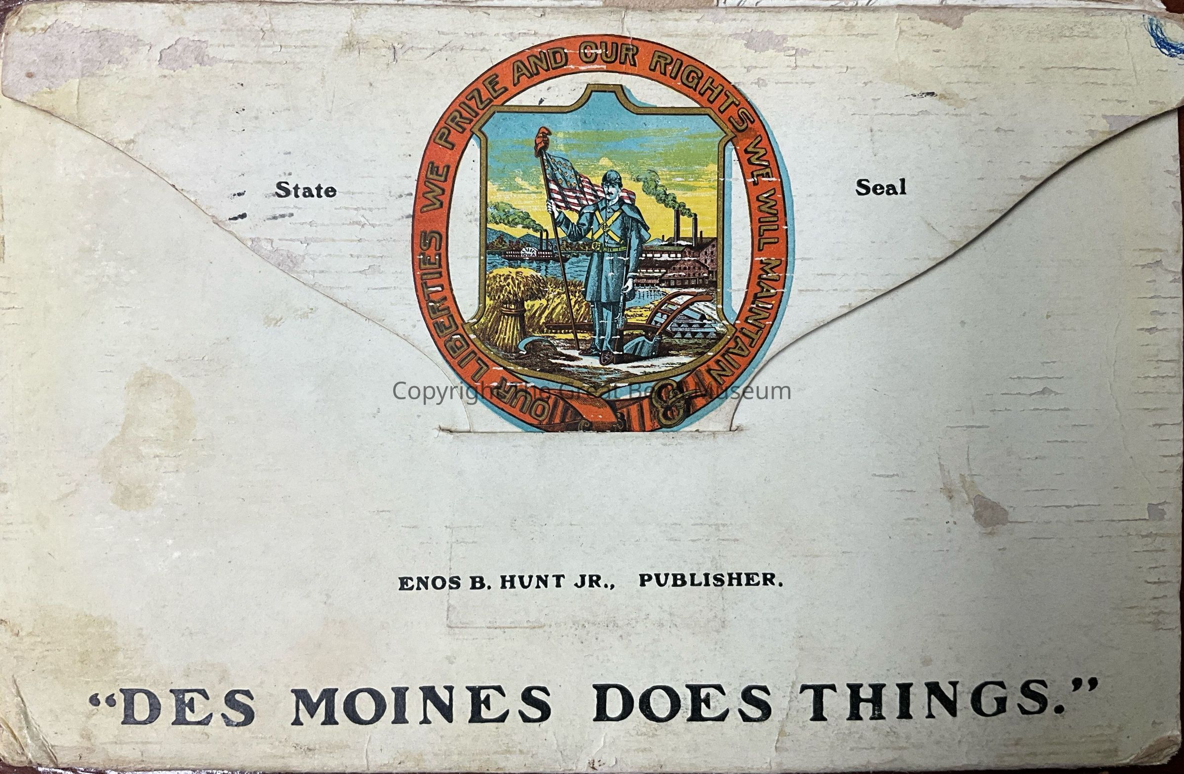 Postcard from Des Moines, Iowa to Miss Flossie Cole