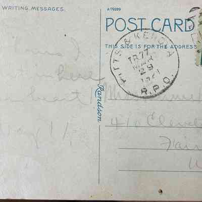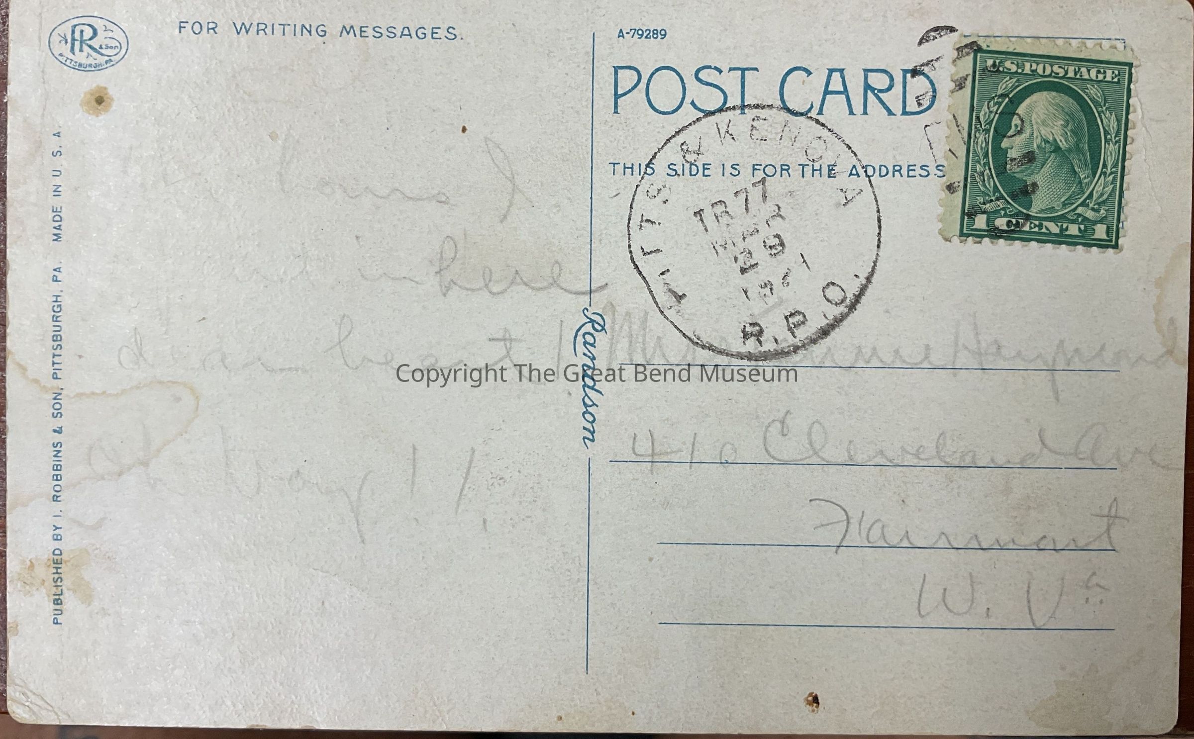 Written on back: “The hours I spent in here dear heart! Oh boy!” (?)