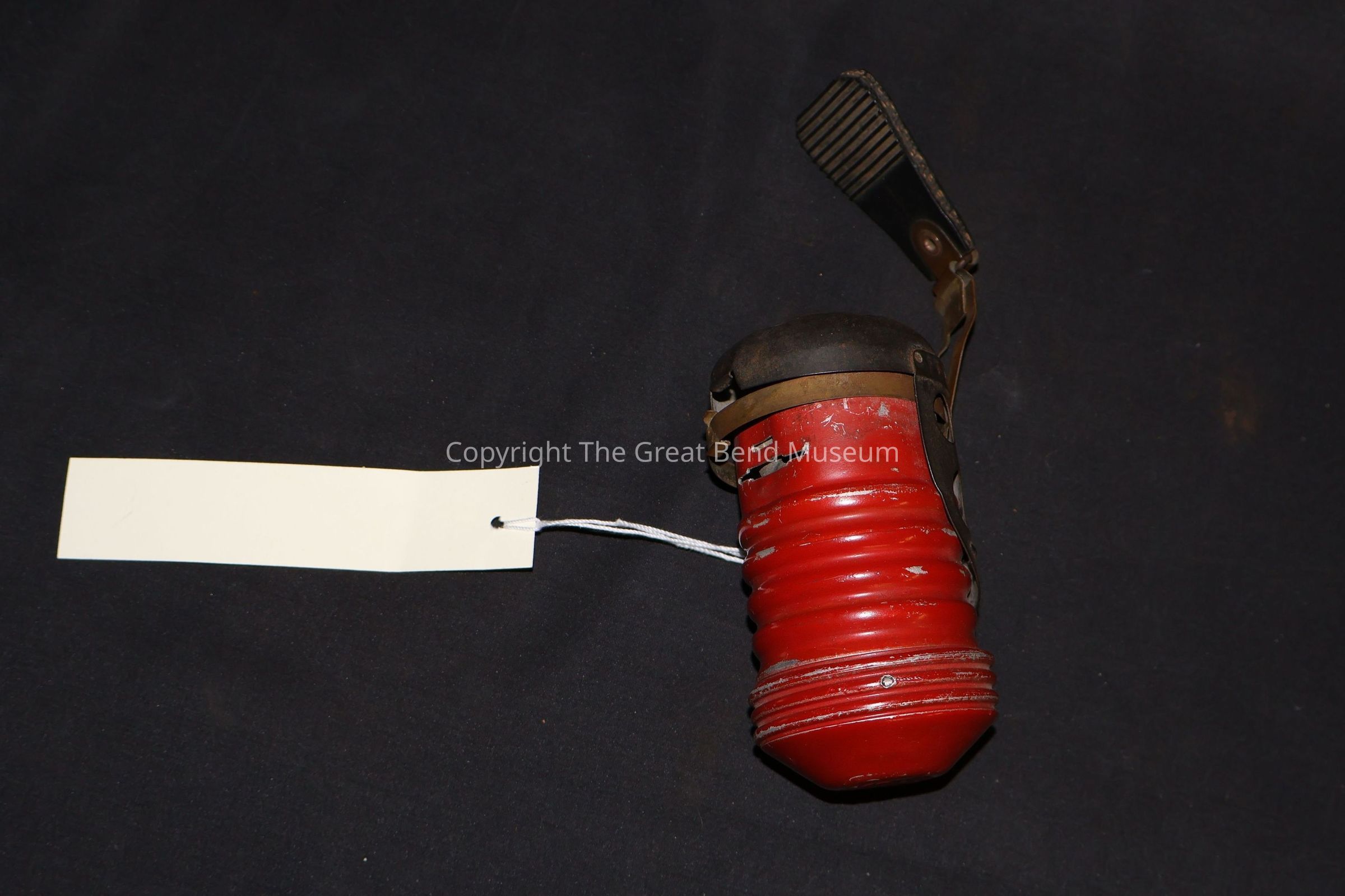 WWII Italian "Red Devil" grenade. It is the Breda Mod. 50. Painted red on the aluminum cylinder. Has steel cap with holes cut into it. Has ridges on base of grenade, also known as a "popper".Acquisition