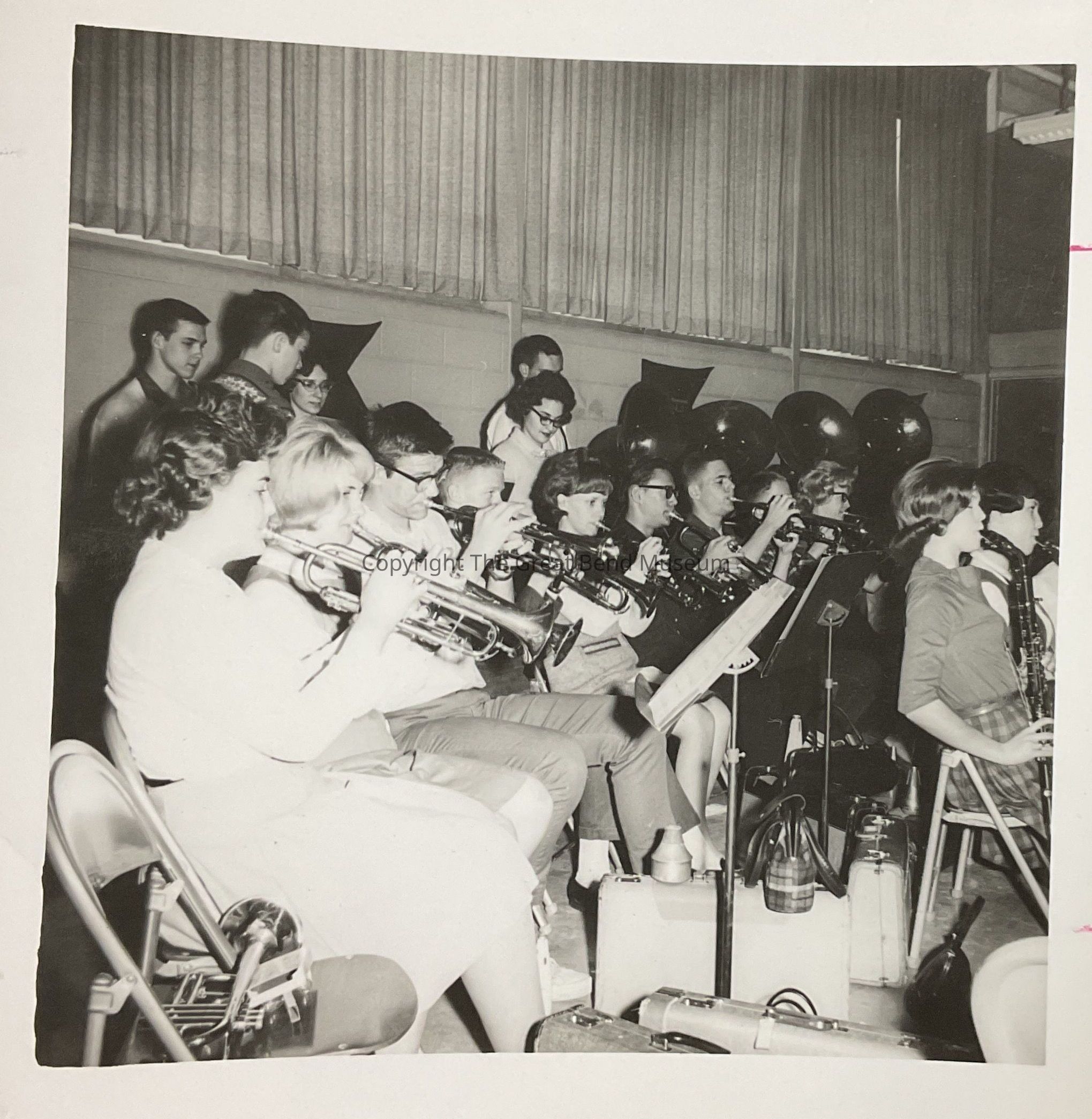 Group of students with their instruments rehearsing for band concert on 1964.