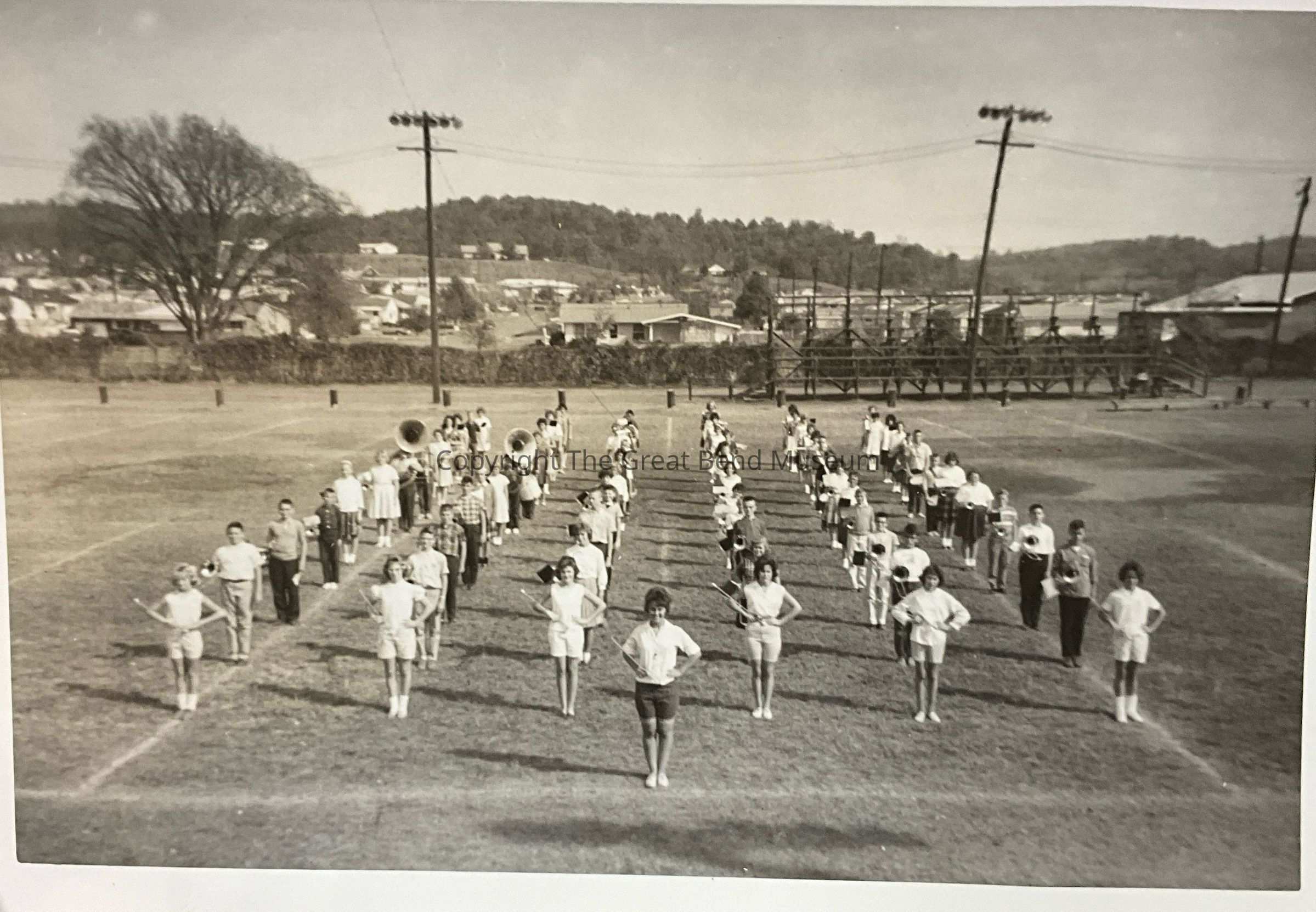 RHS band is practicing on grass field.