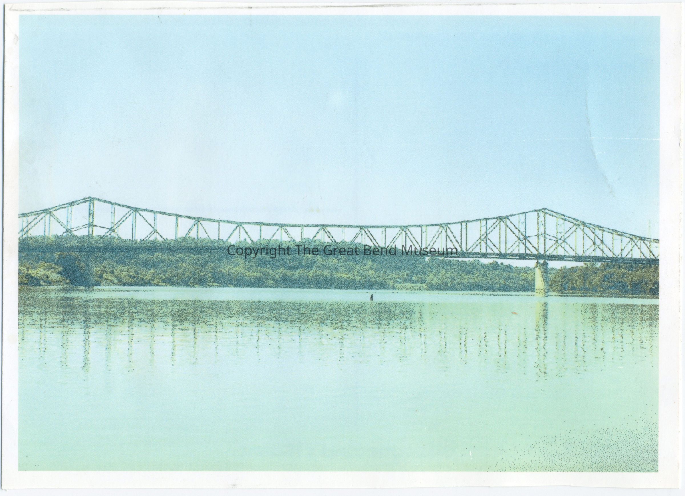 color photo of bridge across Ohio River taken on W.V. side. William S. Ritchie bridge in summer; no boats or car traffic. Back: "William S. Ritchie bridge - crosses Ravenswood, WV into Meigs County, Ohio" "Washington Land's Museum." (2 postcards).Acquisition