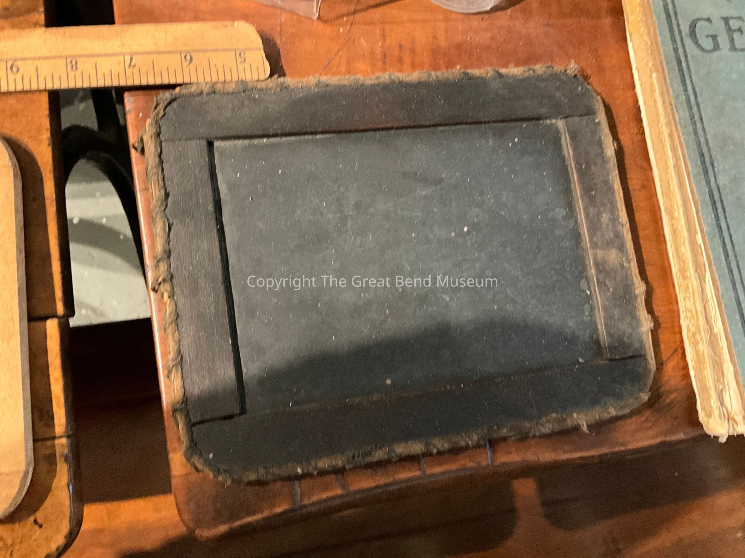 1. double sided slates framed in wood with twine around edges, 2 slates are attached with twine at the top, slates are crackedAcquisition