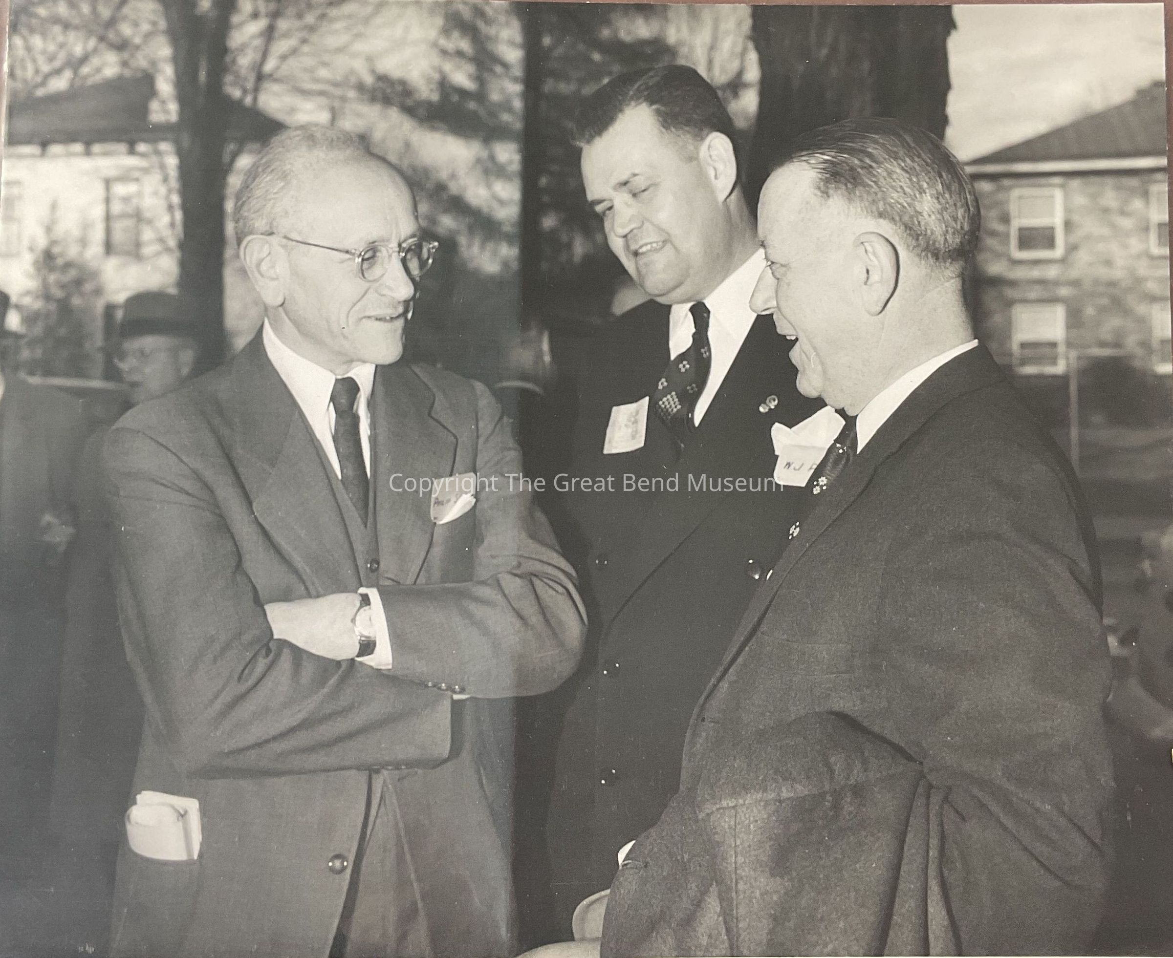 3 Men standing outside talking -- suits and ties -- L/R Philip Sporn. Walter Purdy, unknown man.