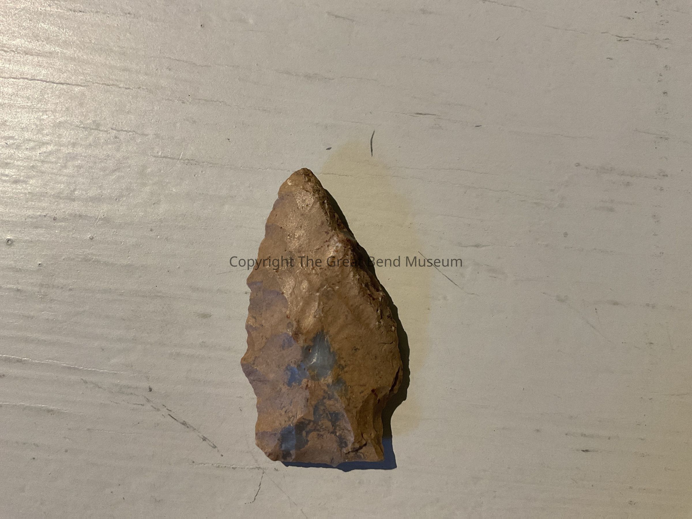 Light Brown to a Gray inner flint. Very minimal shoulders. Stem is almost the width of the blade. Blade is serrated from resharpening.Acquisition