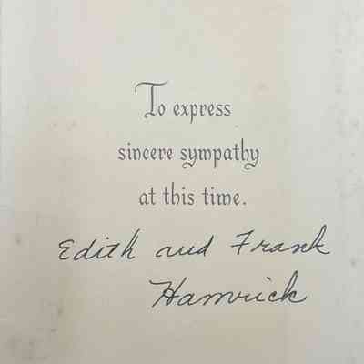 Sympathy Card from Edith and Frank Hamrick to Mrs W.S. Ritchie