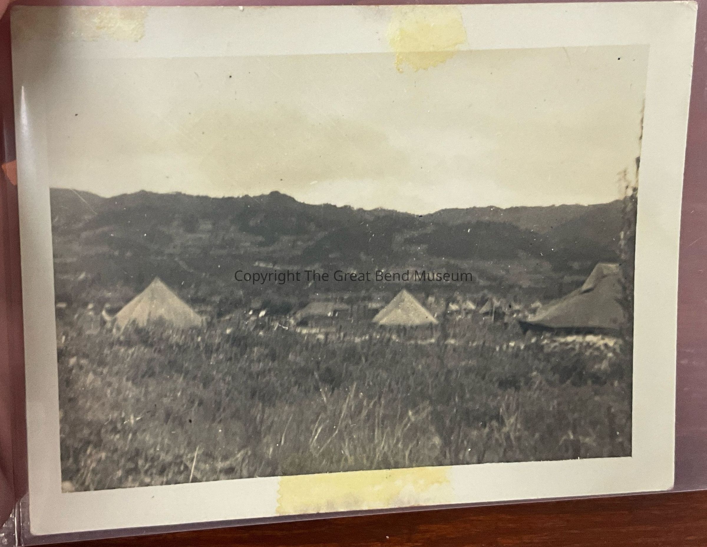 3 tents in a field—Written on back—“Last of July 52–Facing South East looking over 3rd Bat. Comp. in the Punch Bowl—Carl”Acquisition