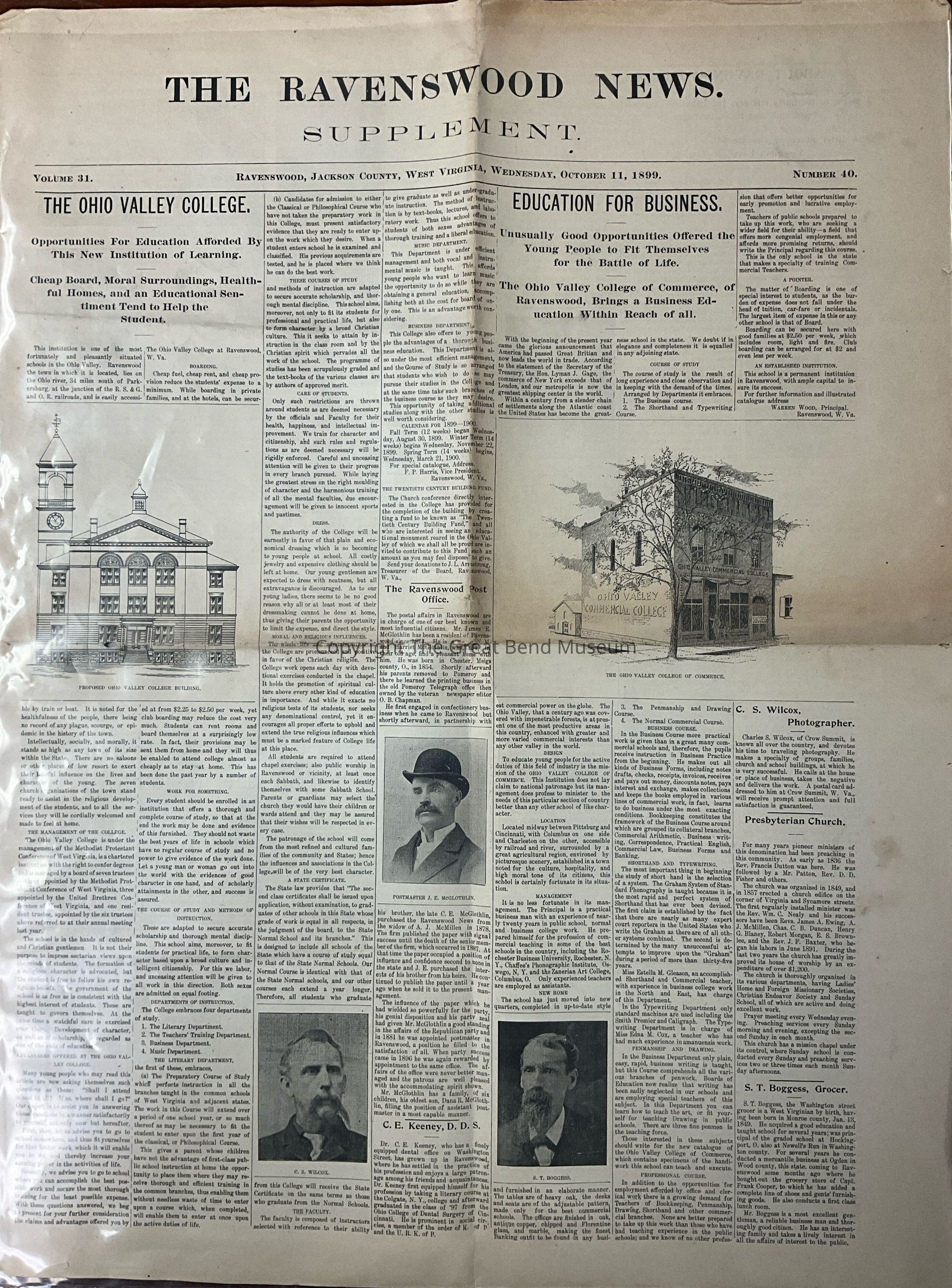 Articles on The Ohio Valley College and various people of Ravenswood