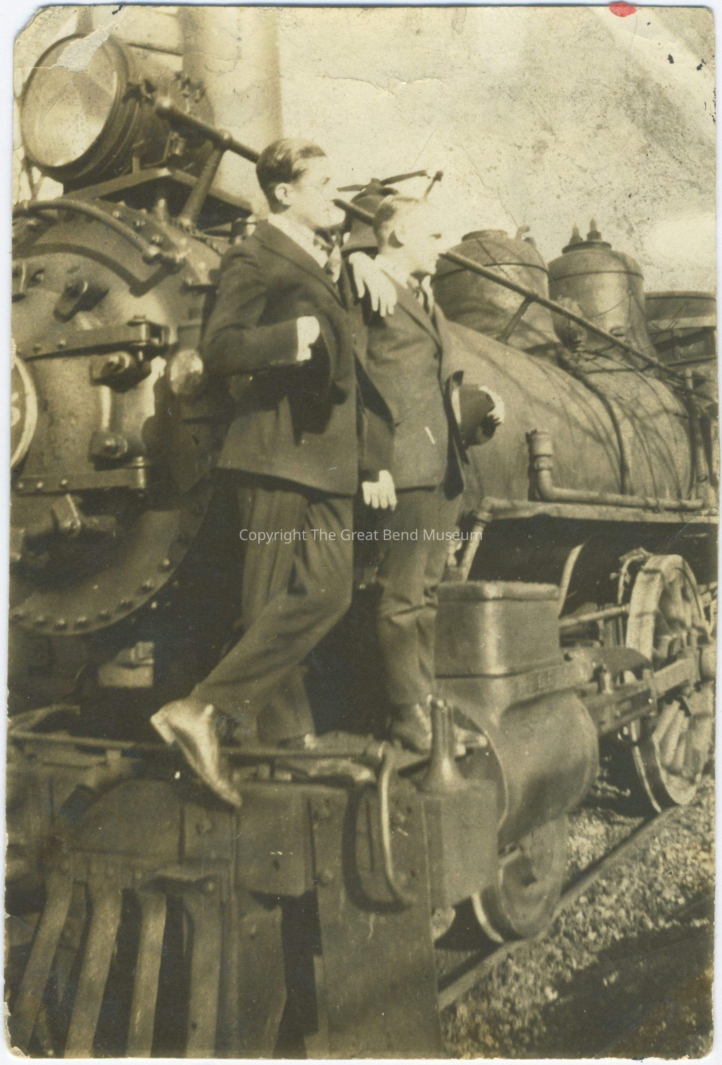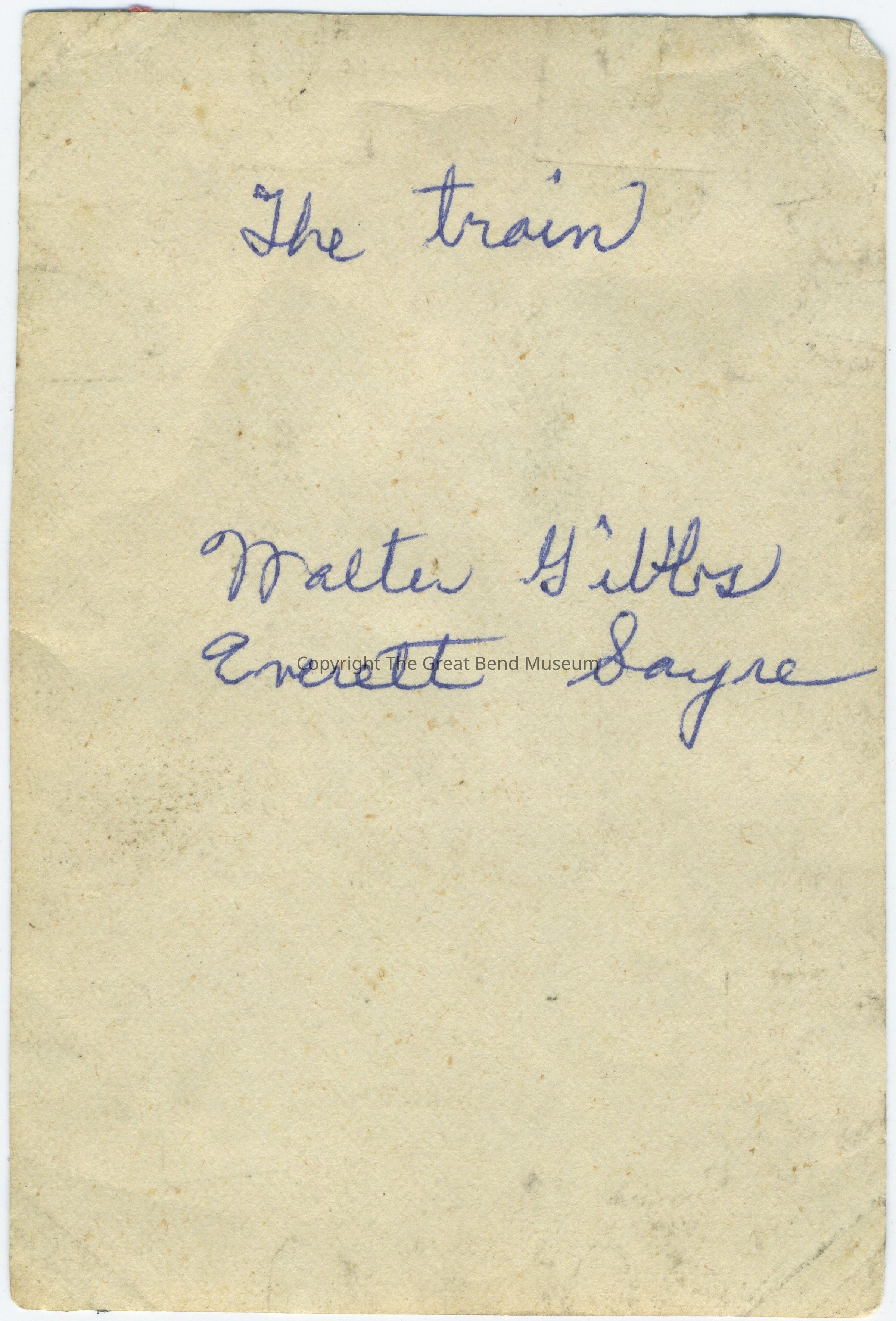 Two men in suits standing on the train/engine. On back : "The Train" "Walter Gibbs, Everett Sayre"