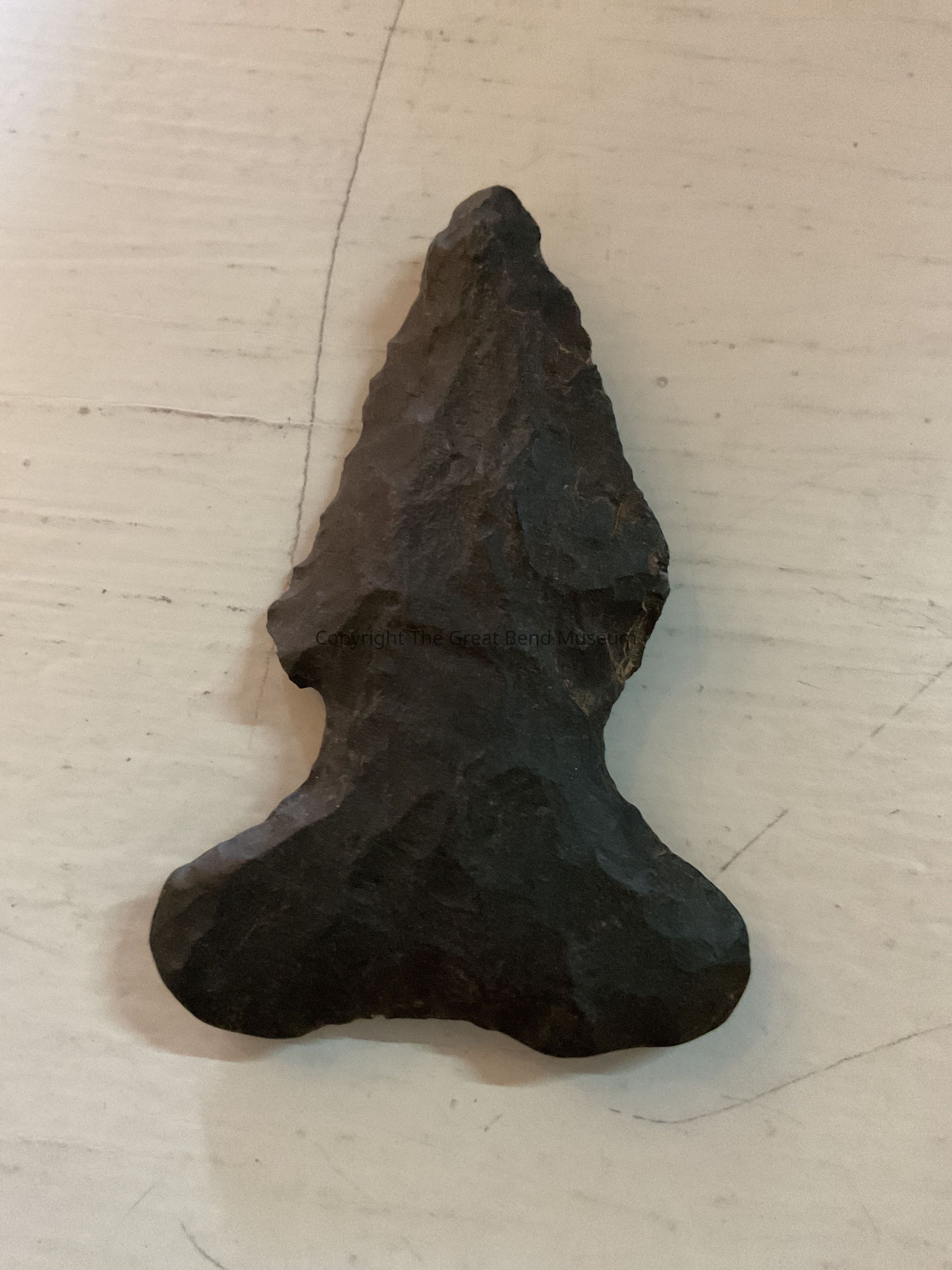 Large triangular shaped corner notched point, with a flat cross section. Blade is excurvate, stem is expanding- meaning widening towards the basal edge., which is concave inn shape.Acquisition