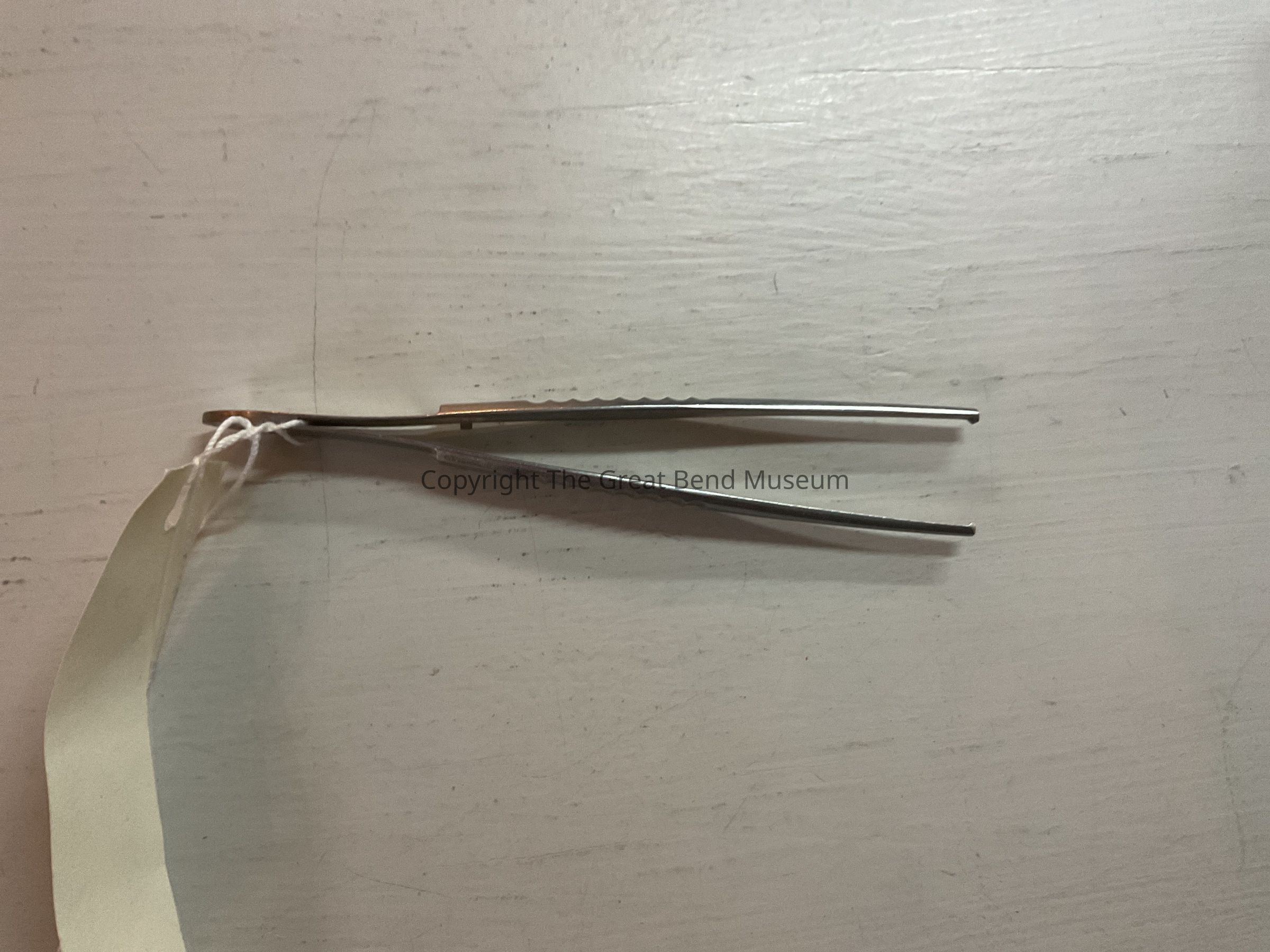 Large 2 blade tweezers with indented rows of metal on center of each blade for better grip. Ends are cut straight across and taper as it goes from one end to another. It has embossed “Wocher Germany” on one side of the top and “Stainless” on the other.Acquisition