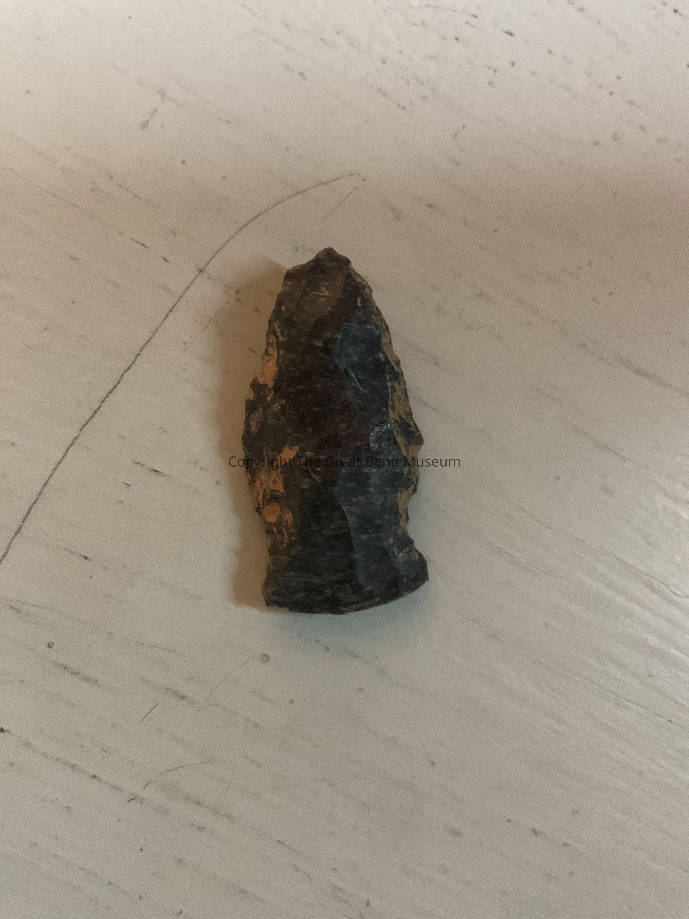 Small to medium dark gray point with some reddish brown mixed in. Weak shouldered stem that is slightly convex on the basal edge.these points are sometimes called Birdpoints.Acquisition