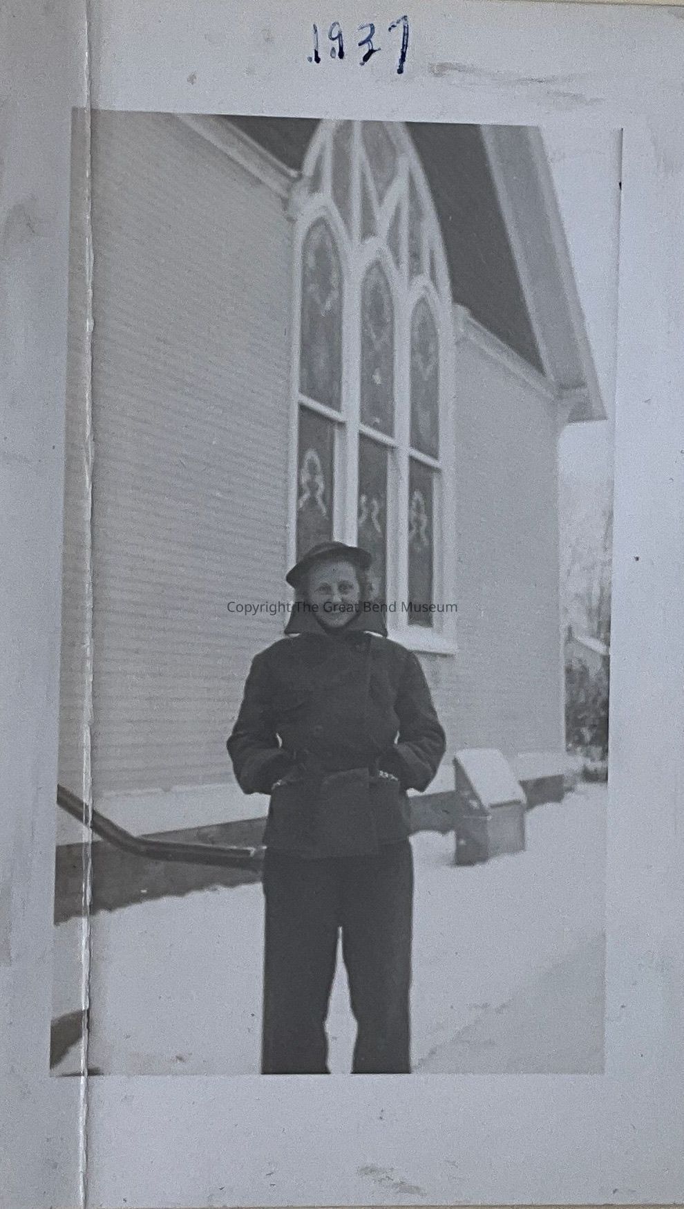 Unidentified Woman in front of Episcopal Church, 1937Entry/Object ID