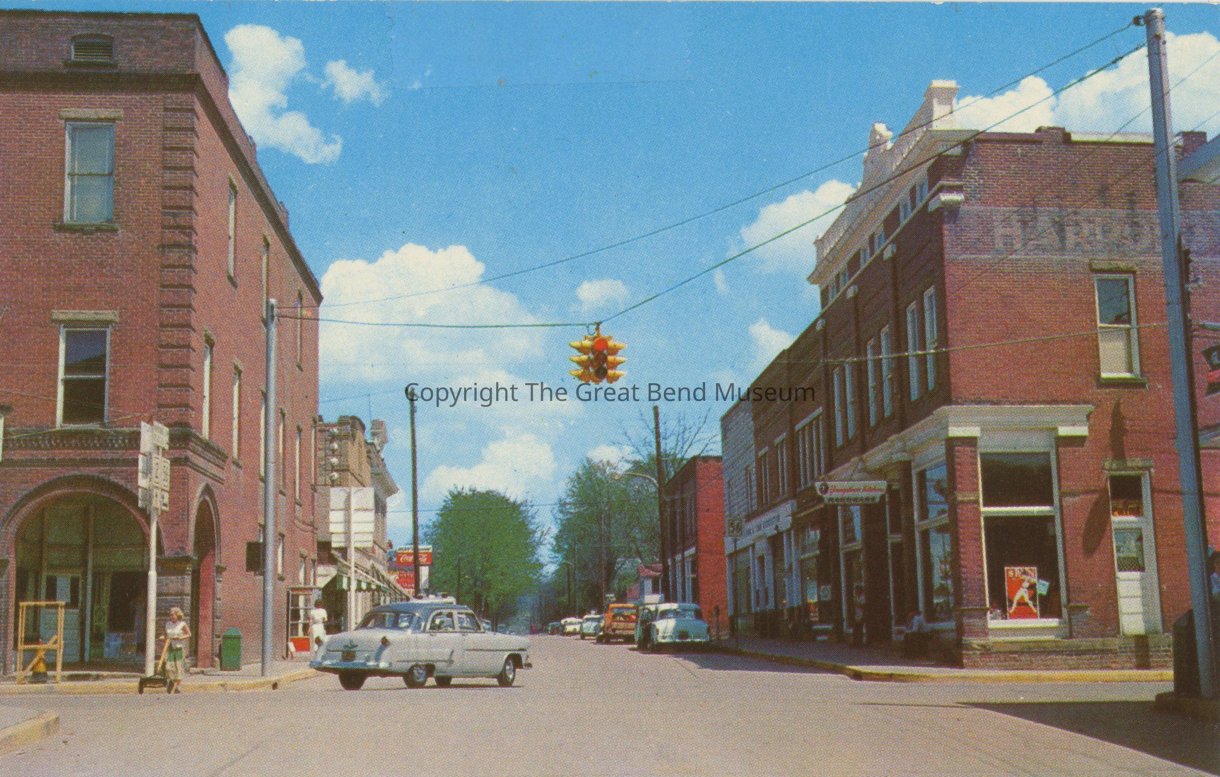 NOTE: Circa late 1950's - early 1060's -- Stoplight installed when? Attire of women and cars