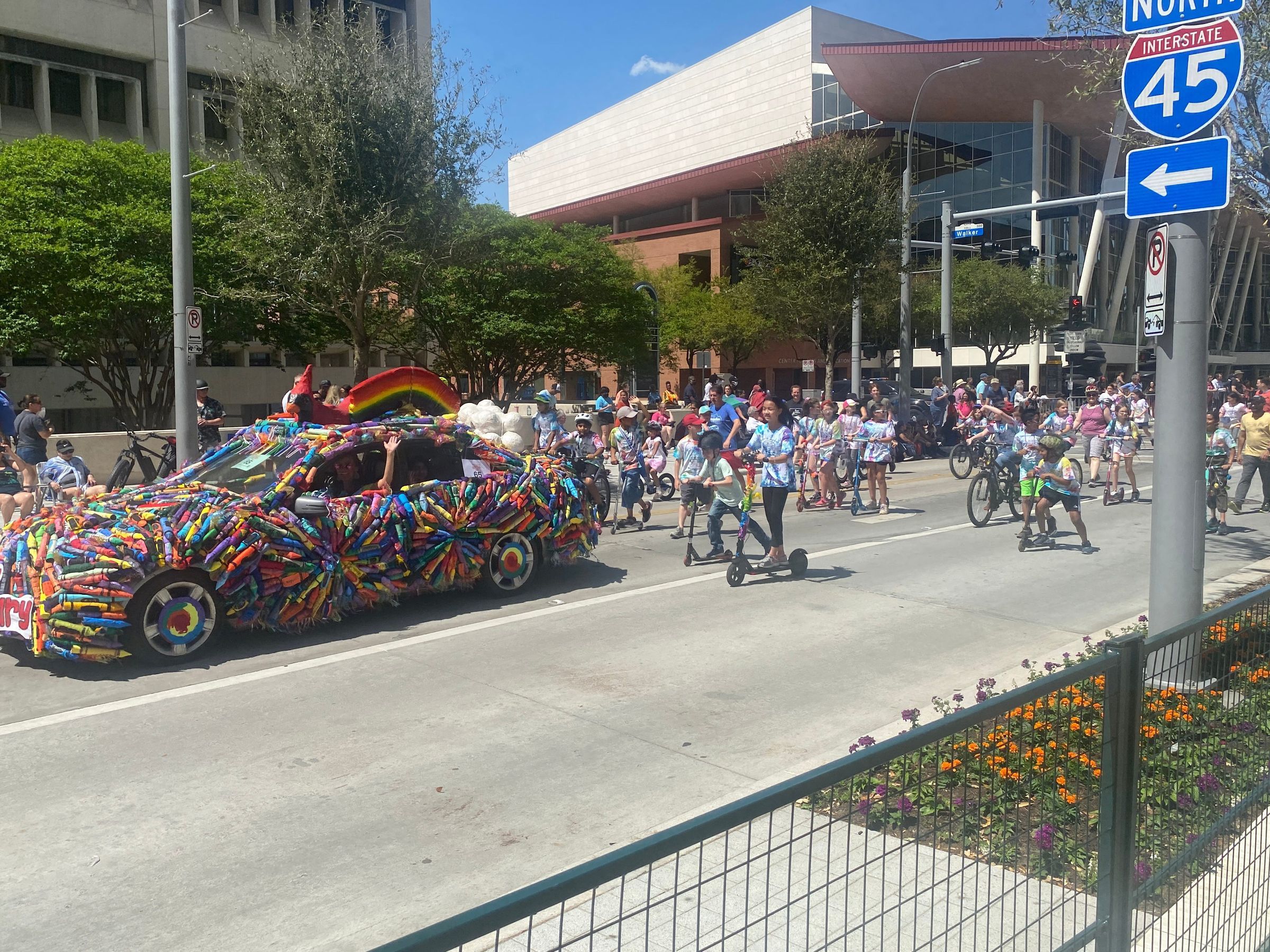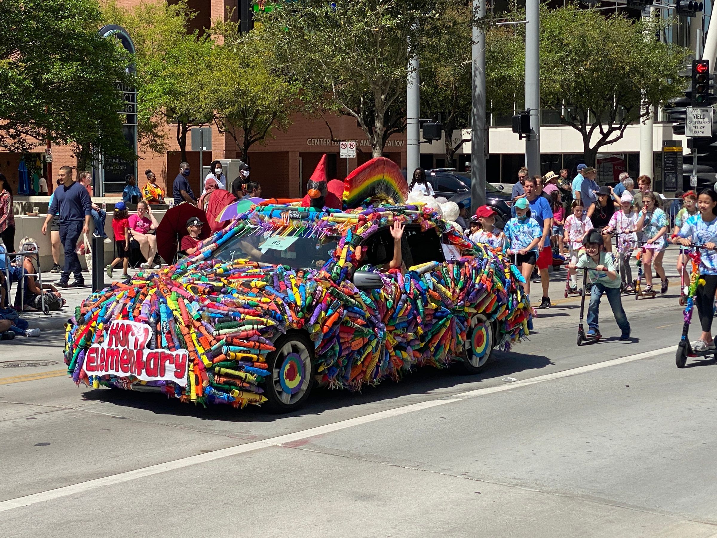 065, Horn Elementary's Rainbow Art Car, Debbie Guelzow