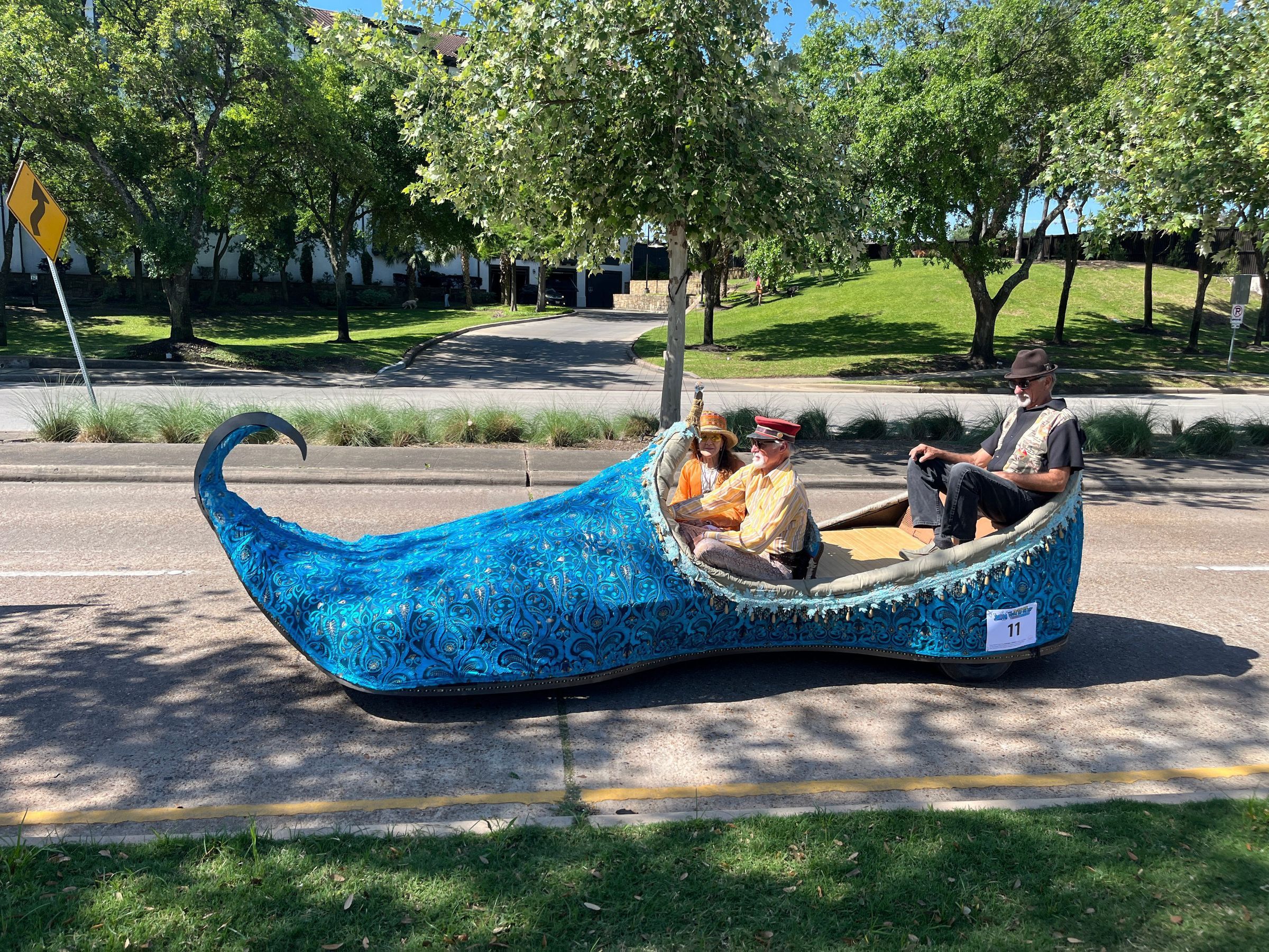 EZ Go Golf Cart with lots of steel, & speakers, & lights added.