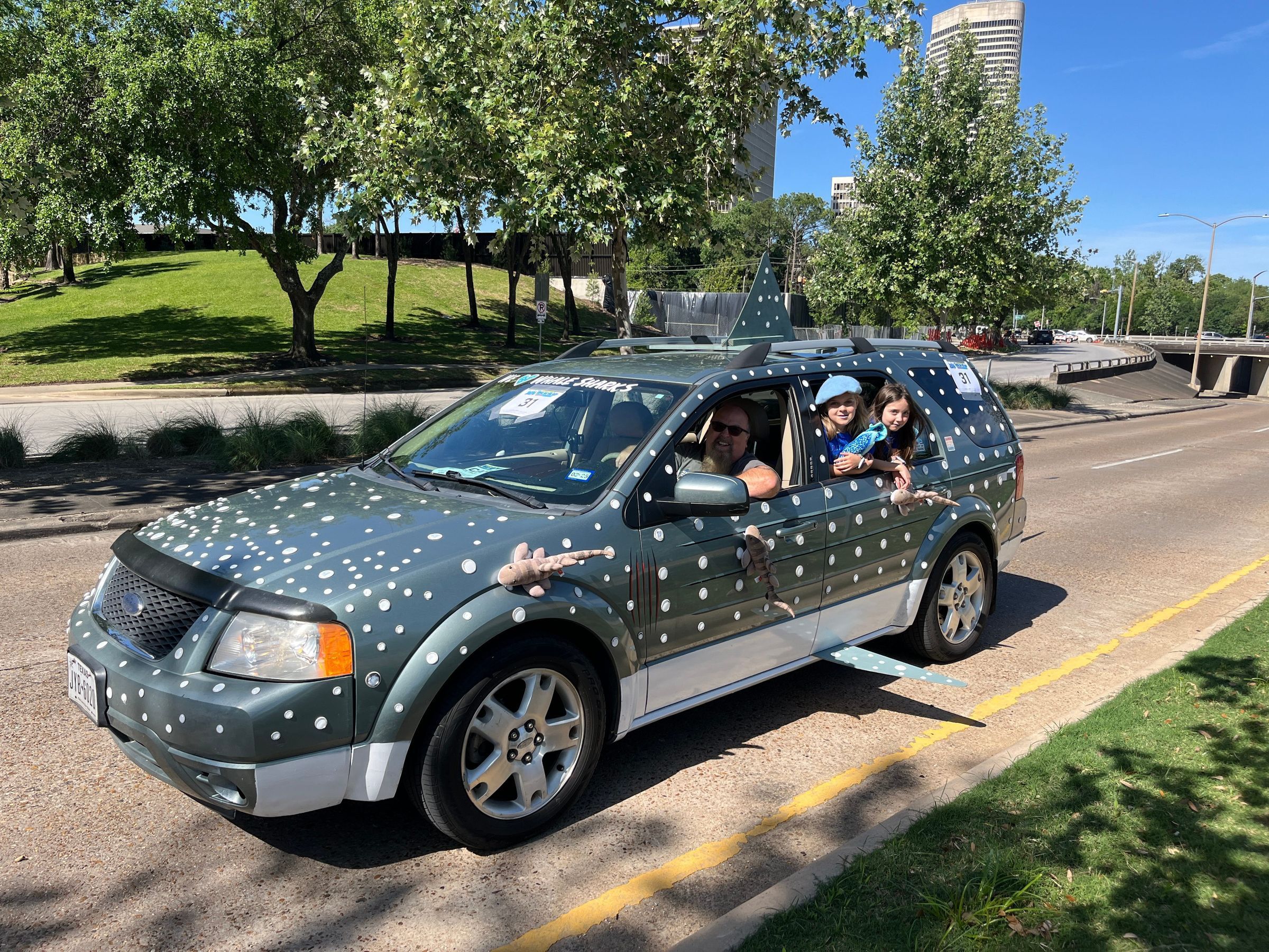 Linden (8) and Laurel (7) both love whale sharks. They were inspired to design and create the interactive Whale Shark Artcar. Inside the shark’s white dots are QR codes that link to live whale shark trackers as well as live cameras and informational videos on whale shark conservation.