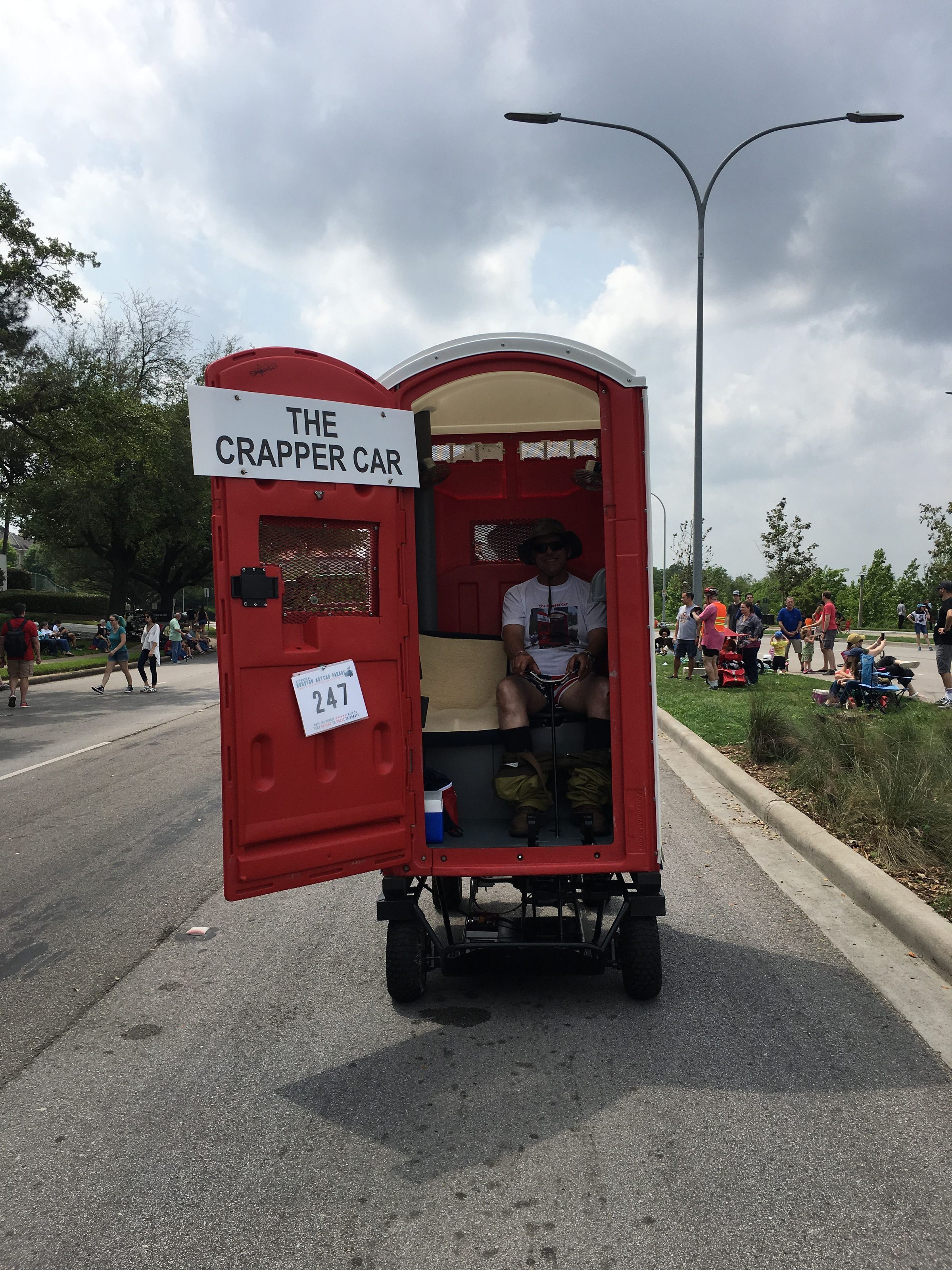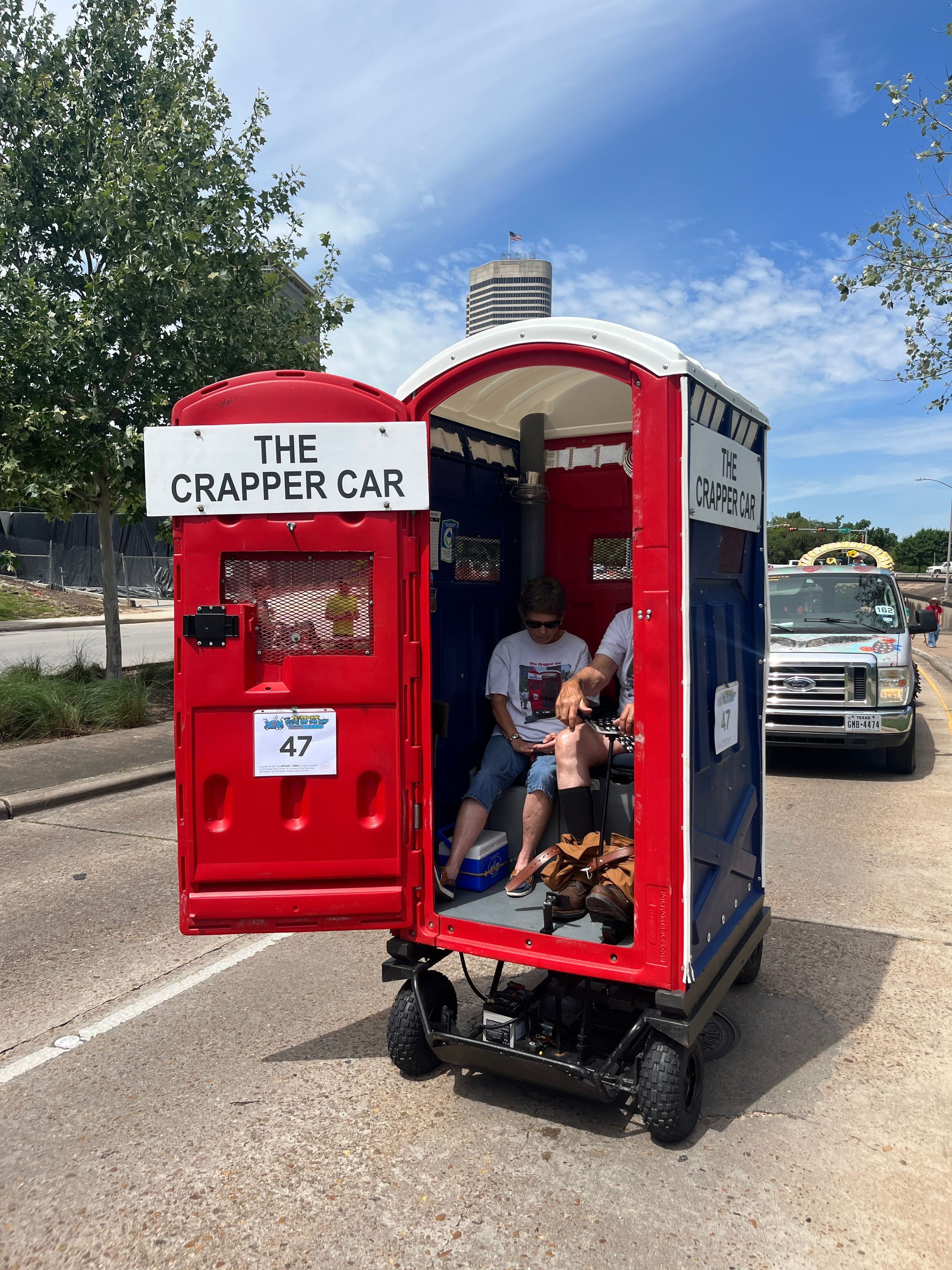 The Crapper Car was built in 2008. It is a motorized port-a-potty on a go cart chassis. It's #1 in the #2 business
