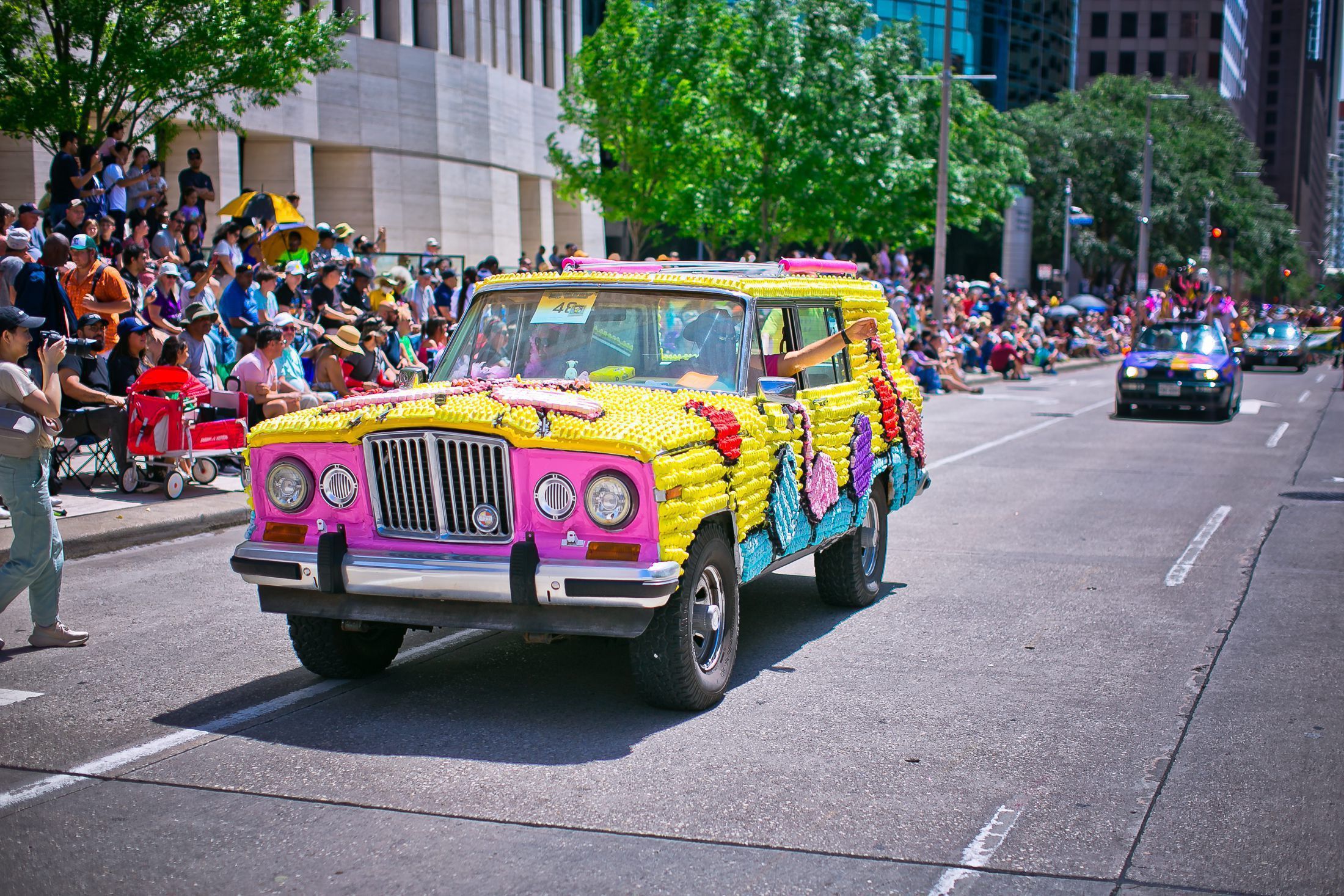 Love -- love -- love the Art Car Parade. My favorite events are Main Street Drag and Spring Branch Shimmy -- where we get to interact with the elementary school children. The up-close time with parade guests, during the line-up is a close second for me.